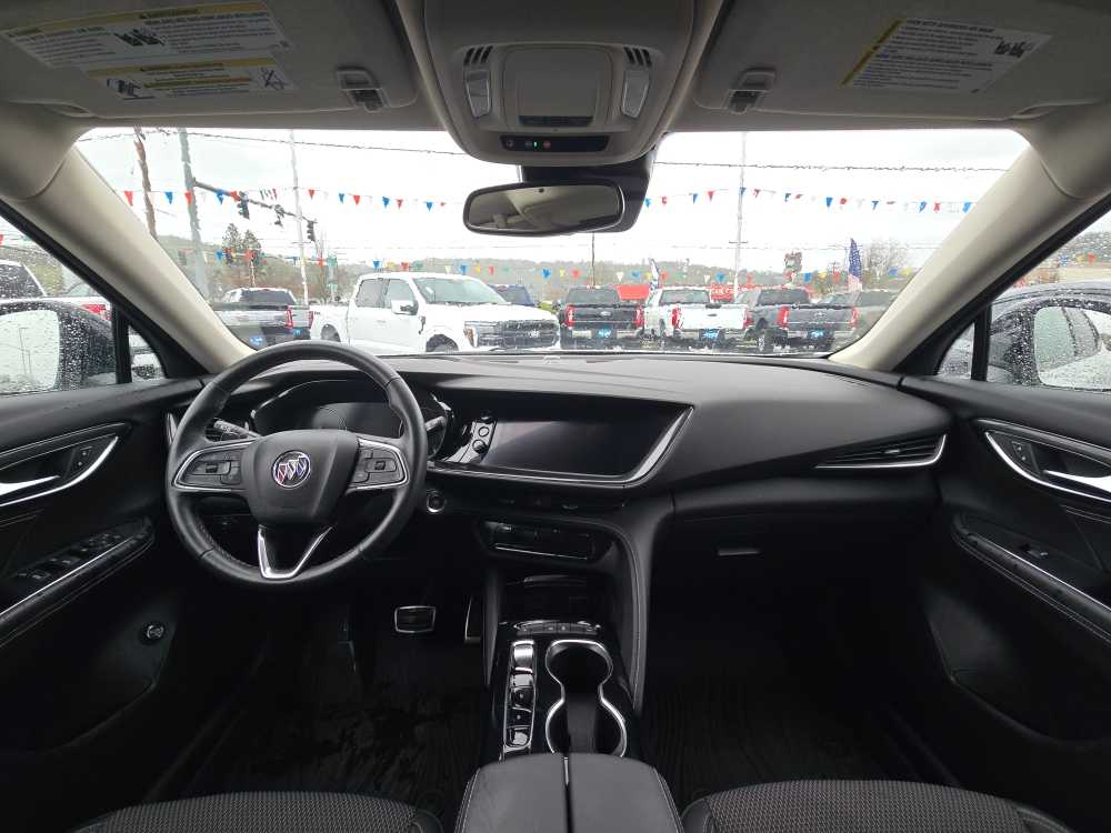 COMFORT AND CONVENIENCE PACKAGE includes (TC2) Hands-free power liftgate, (UVD) heated steering wheel, (KA1) heated driver and front passenger seats, (BTV) Remote vehicle starter system, (CJ2) dual-zone air conditioning, (IOS) 10.2 diagonal Buick Infotainment System, (UQG) 7-speaker enhanced audio system with amplifier, (USK) air quality indicator and (UEC) automatic air quality indicator/sensor (Vehicles built prior to 11-15-21 include heated driver and front passenger seats. Certain vehicles built on or after 11-15-21, will be forced to include (00V) Not Equipped with Heated Driver and Front Passenger Seats, which removes heated driver and front passenger seats. See dealer for details or the window label for the features on a specific vehicle. Vehicles built prior to 11-22-21, include, SPORT TOURING PACKAGE includes (PYS) 20 wheels with Dark finish, unique ST Badging, Dark finish grille surround and mesh inserts, (V5H) Black roof rails, (D75) body-color door handles, (PJV) lower trim/wheel arch moldings, exhaust bezels, window trim and mirror caps with Dark Gloss finish, (CGY) rear cargo compartment cover, headrests with the Sport Touring logo, (B50) Carpeted front floor mats with Sport Touring logo and rear floor mats and (JF5) sport pedals, SAFETY PACKAGE includes (UKC) Lane Change Alert with Side Blind Zone Alert and (UFG) Rear Cross Traffic Alert. AUDIO SYSTEM, 10.2 DIAGONAL BUICK INFOTAINMENT SYSTEM includes multi-touch display, AM/FM/SiriusXM stereo, Bluetooth® streaming audio for music and most phones, Wireless Apple CarPlay®/Wireless Android Auto® for compatible phones, advanced voice recognition, in-vehicle apps, personalized profiles for infotainment and vehicle settings, ENGINE, 2.0L TURBO, 4-CYLINDER, SIDI (228 hp [170 kW] @ 5000 rpm, 258 lb-ft of torque [350 N-m] @ 1500-4000 rpm) (STD), TRANSMISSION, 9-SPEED AUTOMATIC (STD). 2022 Buick Envision with Summit White exterior and Ebony seats interior features a 4 Cylinder Engine with 228 HP at 5000 RPM*. Non-Smoker vehicle