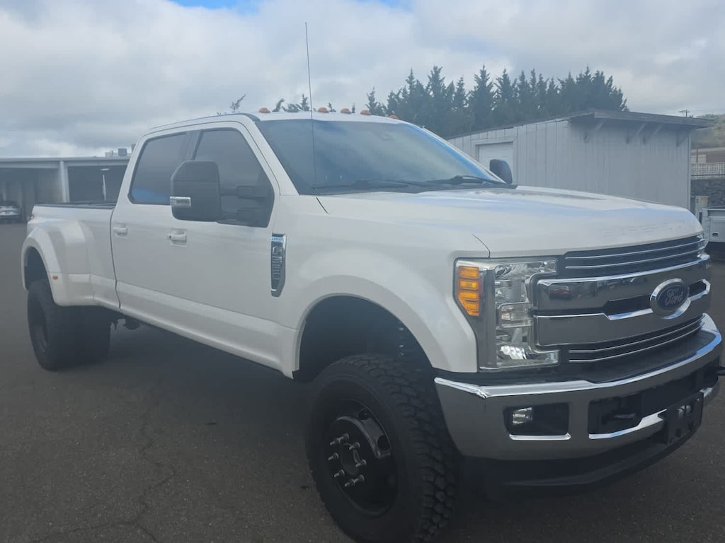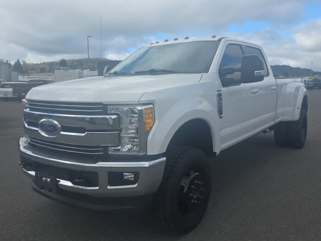 ENGINE: 6.7L POWER STROKE V8 TURBO DIESEL B20 4 valve OHV, manual push-button engine-exhaust braking and intelligent oil-life monitor, 48 Gallon Fuel Tank, Extra Heavy-Duty 220 Amp Alternator, 3.55 Axle Ratio, Dual 78-AH 750 CCA Batteries, LARIAT ULTIMATE PACKAGE Power Heated/Cooled Driver Seat w/Memory, PowerScope Trailer Tow Mirrors w/Memory, Automatic High Beam, rain-sensing windshield wipers, EASY ENTRY®/Exit Memory Drivers Seat Feature, Tailgate Step & Handle, LED Box Lighting, LED Center High-Mounted Stop Lamp (CHMSL), Intelligent Access w/Push-Button Start, Power Heated/Cooled Passenger Seat, Voice-Activated Navigation, HD and SiriusXM Traffic and Travel Link, Note: SiriusXM Traffic and Travel Link includes a, Services are not available in Alaska and Hawaii, Memory Power-Adjustable Pedals, Remote Start System, Twin Panel Power Moonroof, map lights and moonroof switches, Ambient Lighting, Power Telescoping/Tilt Steering Wheel/Column, heat, memory and audio controls, Remote Tailgate Release, LIMITED SLIP W/4.10 AXLE RATIO, TIRES: LT245/75RX17E OWL Automatic Transmission (6) LT245/75Rx17E BSW Automatic Transmission inner rear and optional spare, TRANSMISSION: TORQSHIFT 6-SPEED AUTOMATIC (6R140), SelectShift. 2017 Ford Super Duty F-350 DRW Pickup with White Platinum Metallic Tri-Coat exterior and Black interior features a 8 Cylinder Engine with 440 HP at 2800 RPM*. Non-Smoker vehicle