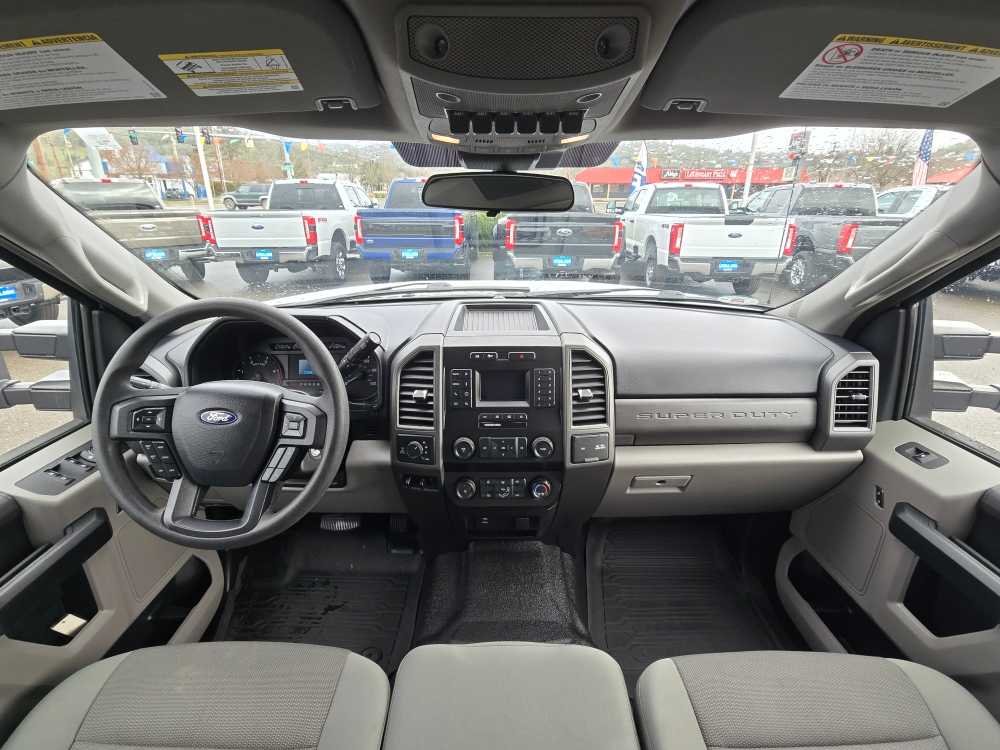 ENGINE: 6.7L 4V OHV POWER STROKE V8 TURBO DIESEL B20 manual push-button engine-exhaust braking and intelligent oil-life monitor, 48 Gallon Fuel Tank, 175 Amp Heavy Duty Alternator, GVWR: 11,500 lb Payload Package w/6.7L, 3.31 Axle Ratio, Dual 78-AH 750 CCA Batteries, POWER EQUIPMENT GROUP Deletes passenger-side lock cylinder, upgraded door trim panel, Accessory Delay, Advanced Security Pack, SecuriLock Passive Anti-Theft System (PATS) and inclination/intrusion sensors, Power Locks, Remote Keyless Entry, Trailer Tow Mirrors w/Power Heated Glass, power heated glass, heated convex spotter mirror and integrated clearance lights and turn signal indicators, Power Front & Rear Seat Windows, 1-touch up/down driver/passenger window, Power Tailgate Lock, WHEELS: 18 ARGENT PAINTED STEEL painted hub covers/center ornaments, PLATFORM RUNNING BOARDS, XL VALUE PACKAGE Bright Chrome Hub Covers & Center Ornaments, Steering Wheel-Mounted Cruise Control, Chrome Front Bumper, Chrome Rear Step Bumper, ELECTRONIC-LOCKING W/3.55 AXLE RATIO, TRANSMISSION: TORQSHIFT 10-SPEED AUTOMATIC SelectShift and selectable drive modes: normal, tow/haul, eco, deep sand/snow and slippery (STD), TIRES: LT275/65RX18E BSW A/S Spare may not be the same as road tire. 2020 Ford Super Duty F-350 SRW Pickup with Oxford White exterior and Medium Earth Gray interior features a 8 Cylinder Engine with 475 HP at 2600 RPM*. Non-Smoker vehicle