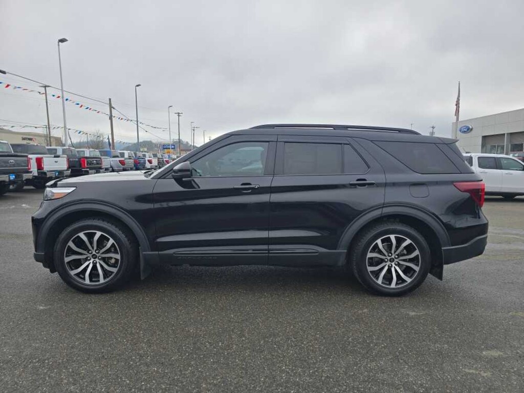 EQUIPMENT GROUP 401A ST High Package, ambient lighting, Memory Drivers Seat, Power Tilt/Telescoping Steering Column, Front Rain-Sensing Wipers, Hands-Free Foot-Activated Liftgate, Reverse Brake Assist, 360-Degree Camera w/Split View, Wireless Charging Pad, 110V/150W AC Power Outlet, Replaces the powerpoint port on the rear side of the center floor console, Active Park Assist 2.0, Radio: B&O Sound System by Bang & Olufsen, MP3 capability, 12 speakers, subwoofer, HD Radio, speed-compensated volume and SiriusXM radio w/a 3 month prepaid subscription, Service is not available in Alaska and Hawaii, Voice-Activated Touchscreen Navigation System, pinch-to-zoom capability, SiriusXM Traffic and Travel Link, Note: SiriusXM Traffic and Travel Link includes a, SiriusXM, PREMIUM TECHNOLOGY PACKAGE: 10.1 LCD Capacitive Portrait Touchscreen, Located in center stack w/swipe and pinch-to-zoom capability, 2 Additional Speakers, 980 watt, FRONT & SECOND ROW FLOOR LINERS (16B) standard black carpet floor mats, TRANSMISSION: 10-SPEED AUTOMATIC (STD). 2021 Ford Explorer with Agate Black Metallic exterior and Ebony interior features a V6 Cylinder Engine with 400 HP at 5500 RPM*. Non-Smoker vehicle