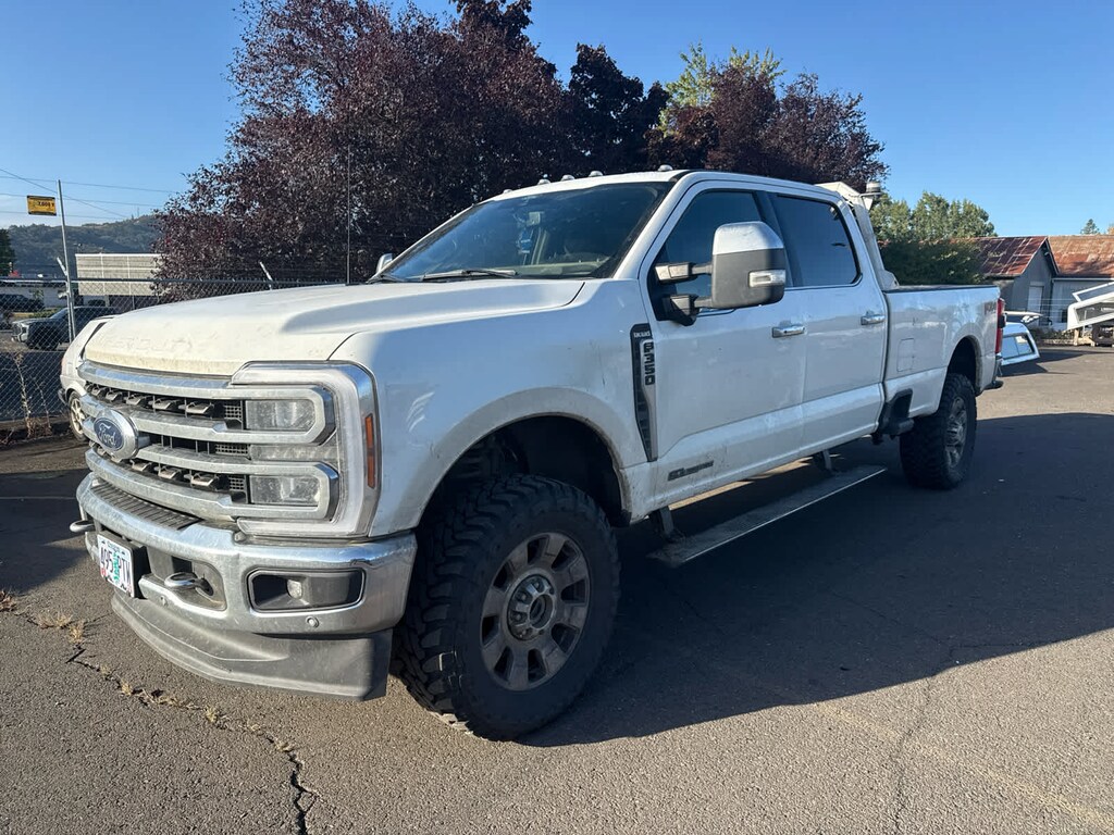 ENGINE: 6.7L 4V OHV POWER STROKE V8 TURBO DIESEL B20 manual push-button engine-exhaust braking, Operator Commanded Regeneration (OCR) and intelligent oil-life monitor, 48 Gallon Fuel Tank, GVWR: 12,400 lb Payload Package, 3.31 Axle Ratio, Dual 68 AH AGM 750 CCA Batteries, CHROME PACKAGE 2 front chrome tow hooks, Unique Chrome Mirror Caps, Chrome Front & Rear Bumpers, Wheels: 20 Chrome PVD Aluminum, unique center ornament, Chrome Door Handles, Monochromatic Paint, Chrome Exhaust Tip, ELECTRONIC-LOCKING W/3.31 AXLE RATIO, TRANSMISSION: TORQSHIFT 10-SPEED AUTOMATIC SelectShift and selectable drive modes: normal, eco, slippery roads, tow/haul and off-road (STD). 2024 Ford Super Duty F-350 SRW Pickup with Star White Metallic Tri-Coat exterior and Java interior features a 8 Cylinder Engine with 475 HP at 2600 RPM*.