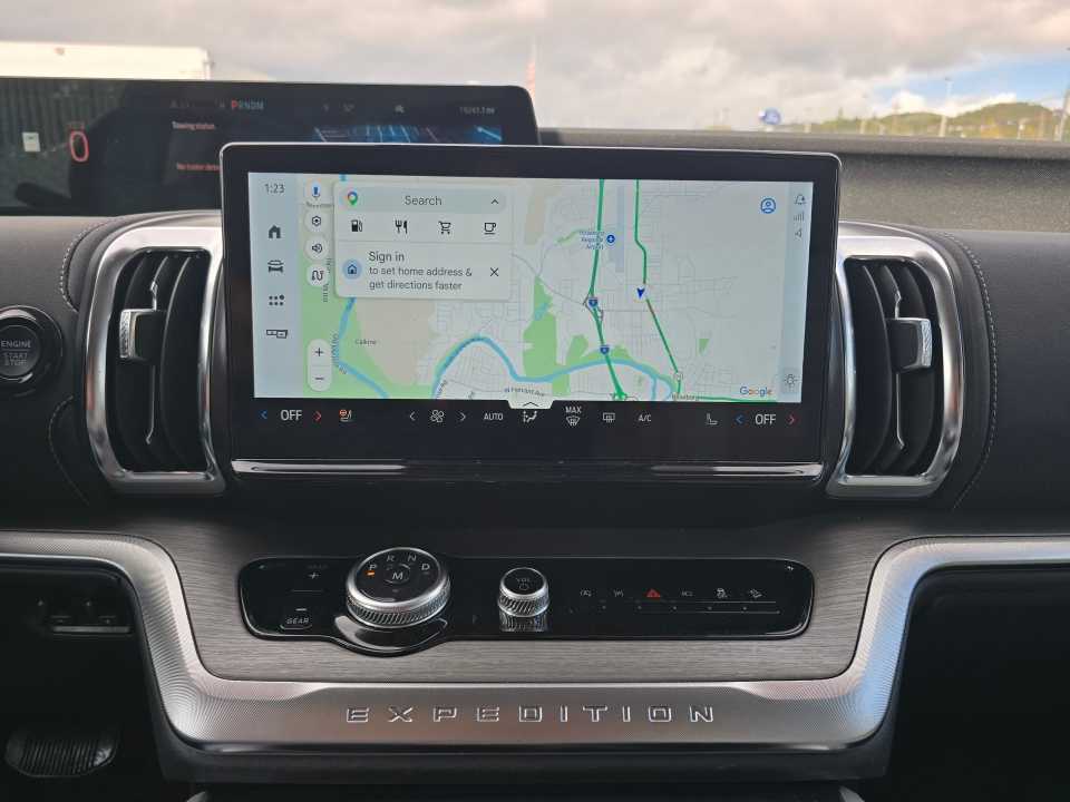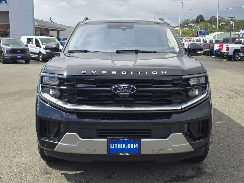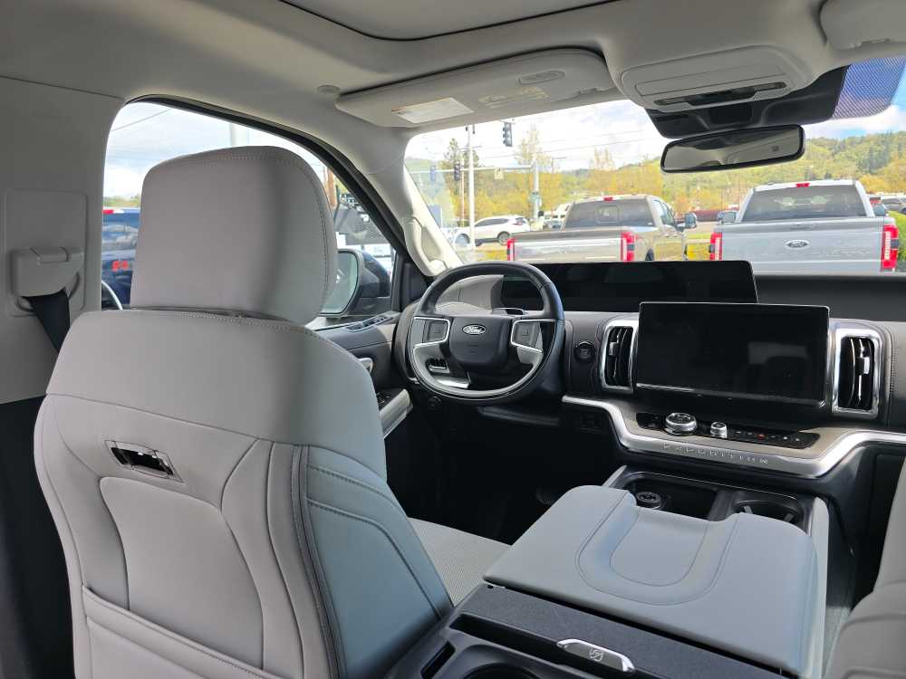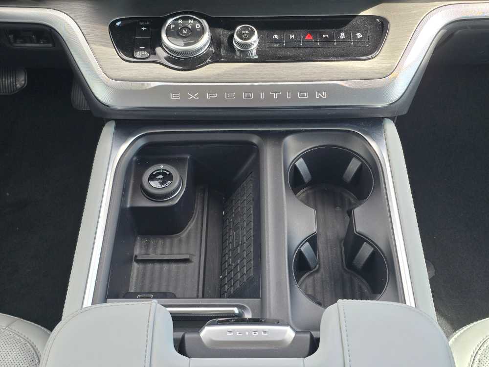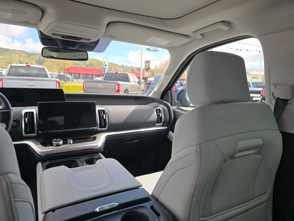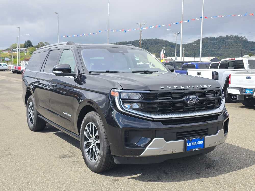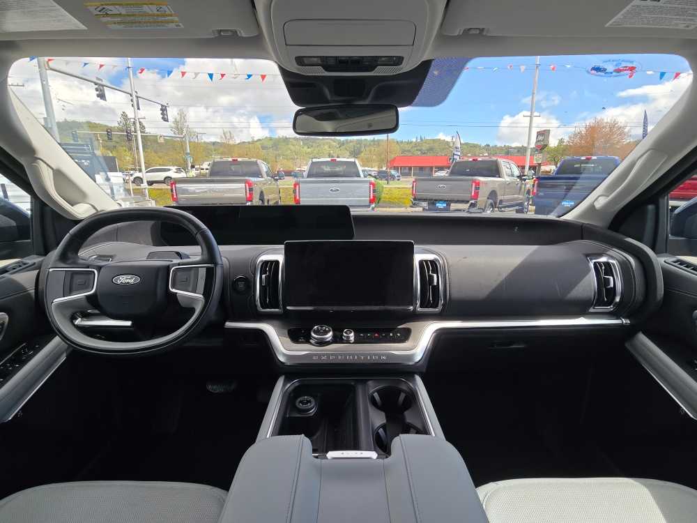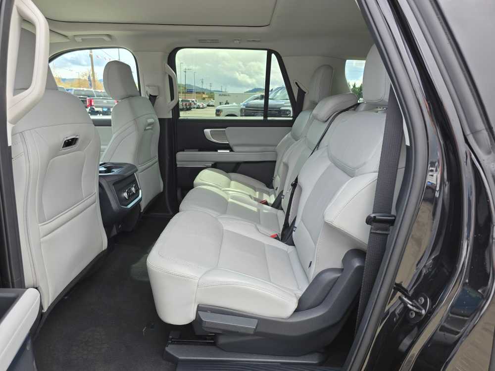 8-passenger seating, tip-and-slide. 2025 Ford Expedition Max with Agate Black exterior and Salt Crystal Gray interior features a V6 Cylinder Engine with 400 HP at 5200 RPM*. Non-Smoker vehicle