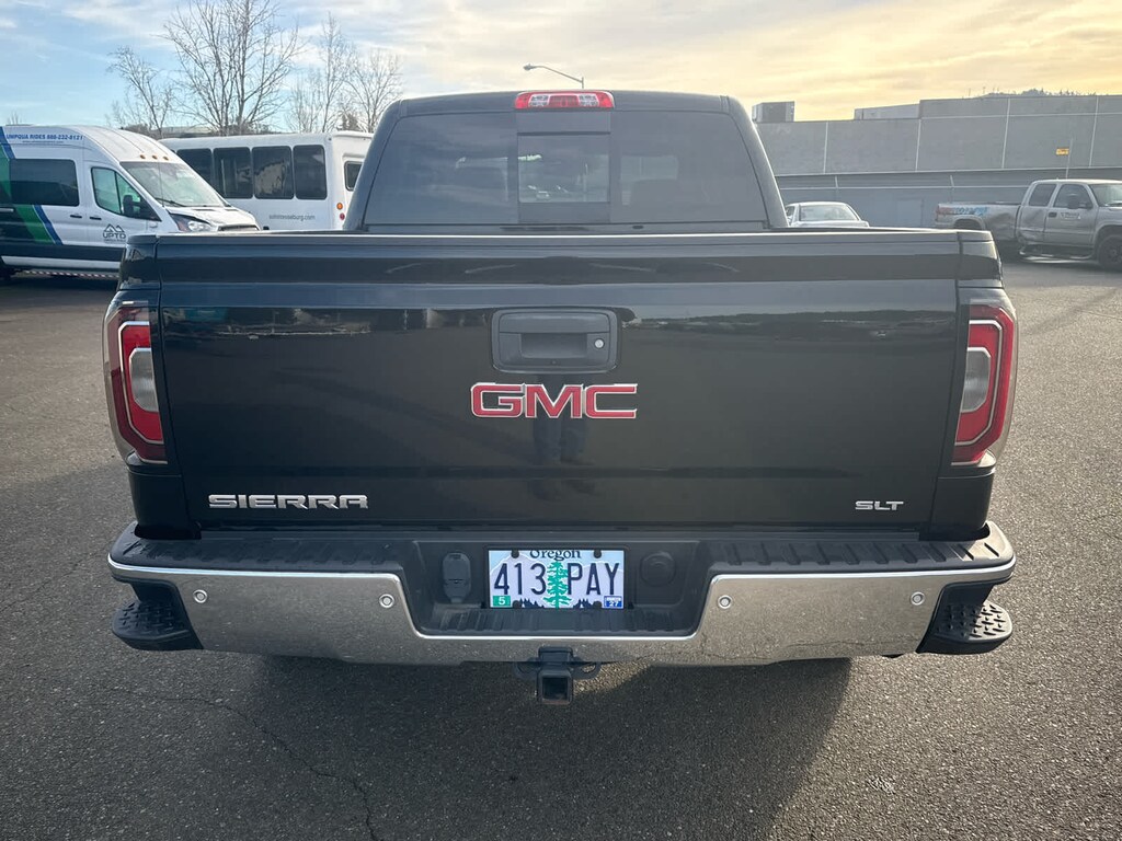 SLT CREW CAB PREMIUM PLUS PACKAGE Includes (NZP) 20 chrome clad wheels, (QSS) P275/55R20 all-season, blackwall tires, (UD5) Front and Rear Park Assist, (UVD) heated steering wheel, (A48) power sliding rear window, (BVQ) 6 rectangular chrome tubular assist steps, (UQA) Bose premium audio system, (IO6) IntelliLink 8 Diagonal Color Touch audio system with Navigation, (JL1) trailer brake controller, (Y86) Enhanced Driver Alert Package, (AN3) front bucket seats, (KQV) heated and vented seating, (CGN) spray-on bed liner and (T4L) full LED headlamps. ENGINE, 6.2L ECOTEC3 V8 WITH ACTIVE FUEL MANAGEMENT, DIRECT INJECTION and Variable Valve Timing, includes aluminum block construction, (420 hp [313 kW] @ 5600 rpm, 460 lb-ft of torque [624 Nm] @ 4100 rpm), SUNROOF, POWER, ENHANCED DRIVER ALERT PACKAGE includes (UHX) Lane Keep Assist, (TQ5) IntelliBeam headlamps, (UHY) Low Speed Collision Mitigation Braking, (UD5) Front and Rear Park Assist and (UEU) Forward Collision Alert, Safety Alert Seat, SEATING, HEATED AND VENTILATED PERFORATED LEATHER-APPOINTED FRONT BUCKET, SEATS, FRONT FULL-FEATURE LEATHER-APPOINTED BUCKET with (KA1) heated seat cushions and seat backs. Includes 10-way power driver and front passenger seat adjusters, including 2-way power lumbar control, 2-position driver memory, adjustable head restraints, (D07) floor console and storage pockets. (Includes (K4C) wireless charging. AUDIO SYSTEM, 8 DIAGONAL COLOR TOUCH SCREEN NAVIGATION WITH INTELLILINK, AM/FM/SIRIUSXM, HD RADIO with USB ports, auxiliary jack, Bluetooth® streaming audio for music and most phones, Pandora Internet radio and voice-activated technology for radio and phone, TRANSMISSION, 8-SPEED AUTOMATIC, ELECTRONICALLY CONTROLLED with overdrive and tow/haul mode. Includes Cruise Grade Braking and Powertrain Grade Braking, STEERING WHEEL, HEATED, LEATHER WRAPPED with audio and cruise controls. 2017 GMC Sierra 1500 with Onyx Black exterior and Jet Black interior features a 8 Cylinder Engine with 420 HP at 5600 RPM*. Non-Smoker vehicle