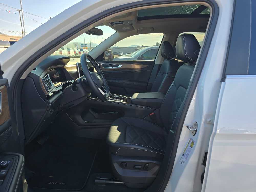 Third Row Seat, All Wheel Drive, Power Liftgate, Rear Air, Heated Driver Seat, Cooled Driver Seat, Back-Up Camera, Satellite Radio, iPod/MP3 Input, Onboard Communications System, Trailer Hitch, Aluminum Wheels, Remote Engine Start, Dual Zone A/C, Hands-Free Liftgate. Rear Spoiler, MP3 Player, Remote Trunk Release, Privacy Glass, Keyless Entry. 2024 Volkswagen Atlas with Pure White exterior and Titan Black interior features a 4 Cylinder Engine with 269 HP at 5500 RPM*. Non-Smoker vehicle