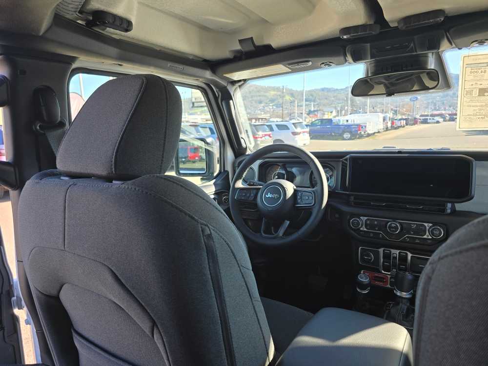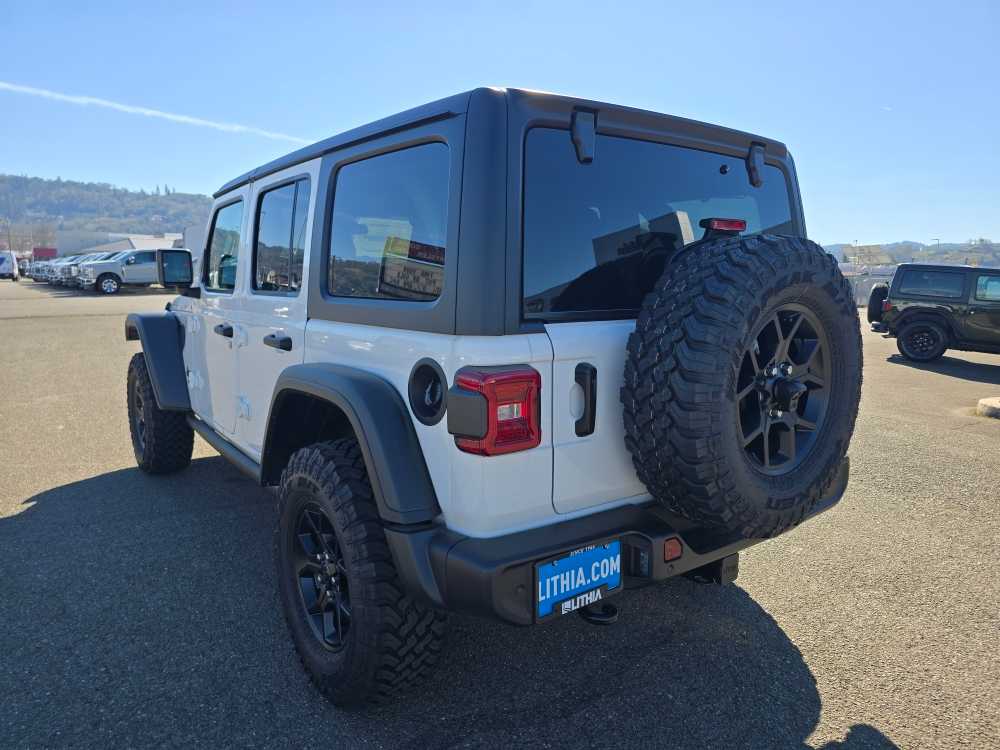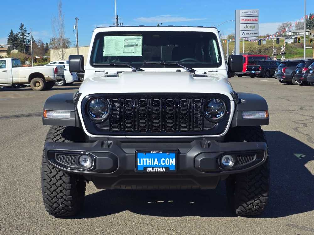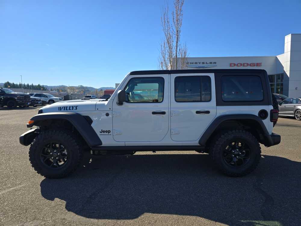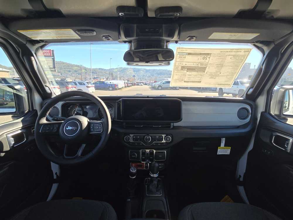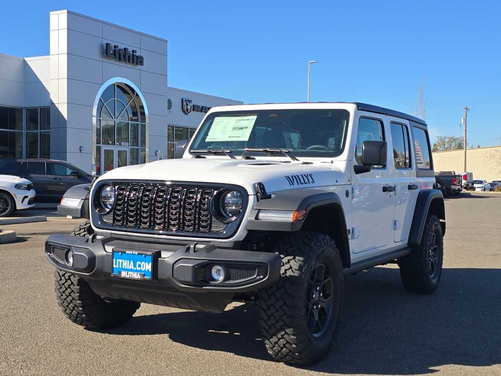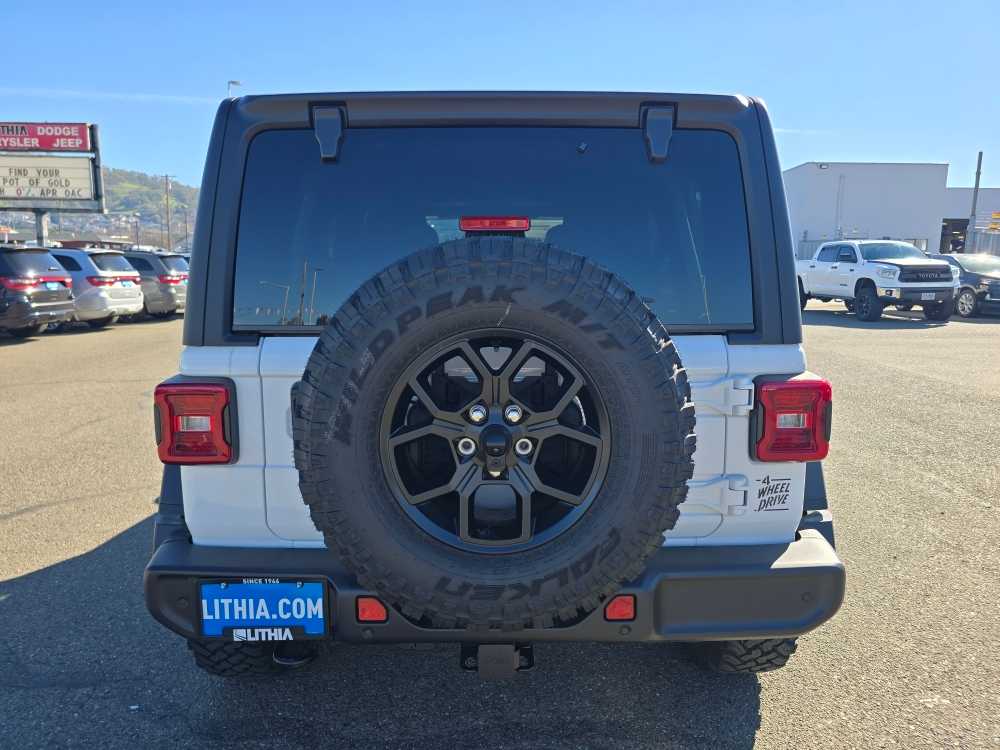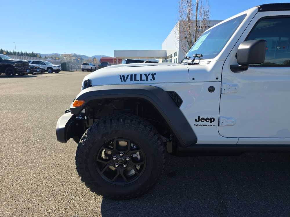 QUICK ORDER PACKAGE 24W WILLYS 3.6L V6 24V VVT UPG I Engine w/ESS, 8-Speed Automatic 850RE Transmission, 7 & 4 Pin Wiring Harness, Conventional Differential Front Axle, 4-Wheel Drive Swing Gate Decal, Black Grille w/Gloss Black Rings, Injection Molded Black Rear Bumper, Dana M210 Wide HD Tube Front Axle, Daytime Running Lamps LED Accents, Front LED Fog Lamps, LED Premium Reflector Headlamps, E-Locker Rear Axle, Corning Gorilla Glass, Security Alarm, Class II Receiver Hitch, Mold In Color Bumper w/Gloss Black, Advanced Brake Assist, Automatic Headlamps, Off-Road Plus Mode, Willys Hood Decal, Full Speed Forward Collision Warning Plus, Rock Protection Sill Rails, Power Heated Mirrors, Enhanced Adaptive Cruise Control, Auxiliary Switches, Dana M220 Wide Rear Axle, Molded in Color Rubicon, 8-SPEED AUTOMATIC 850RE TRANSMISSION Adaptive Cruise Control w/Stop, Anti-Lock 4-Wheel Disc Brakes, Dana M200 Rear Axle, Selec-Speed Control, BLACK 3-PIECE HARD TOP Freedom Panel Storage Bag, Rear Window Defroster, Rear Window Wiper/Washer, No Soft Top, SAFETY GROUP ParkSense Rear Park Assist System, Auto High Beam Headlamp Control, Blind Spot & Cross Path Detection, LED Taillamps, Injection Molded Black Rear Bumper, CONVENIENCE GROUP Emergency/Assistance Call, 2-Door Passive Entry, Front Door Locks, Cluster 7.0 TFT Color Display, Universal Garage Door Opener, Heated Front Seats, Air Conditioning w/Auto Temp Control, Heated Steering Wheel, Air Filtering, 3.6L V6 24V VVT UPG I ENGINE W/ESS Engine Oil Cooler (STD). Jeep Willys with Bright White Clearcoat exterior and Black interior features a V6 Cylinder Engine with 285 HP at 6400 RPM*.