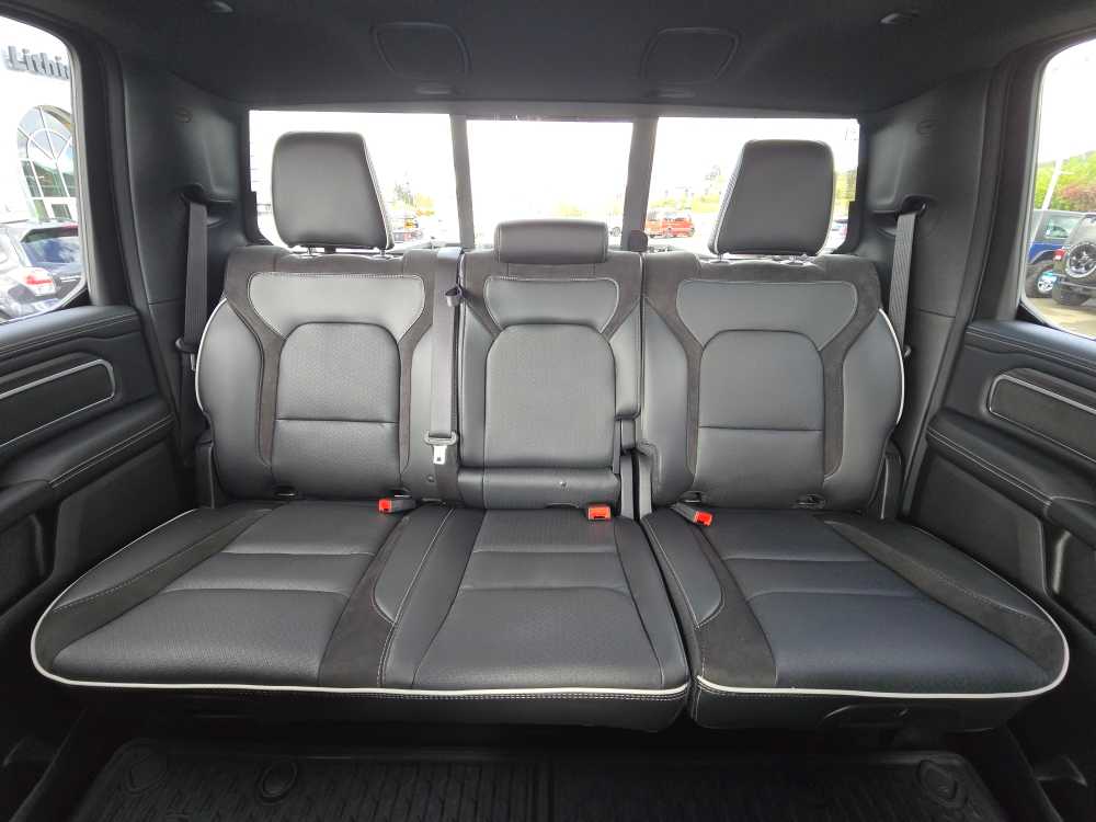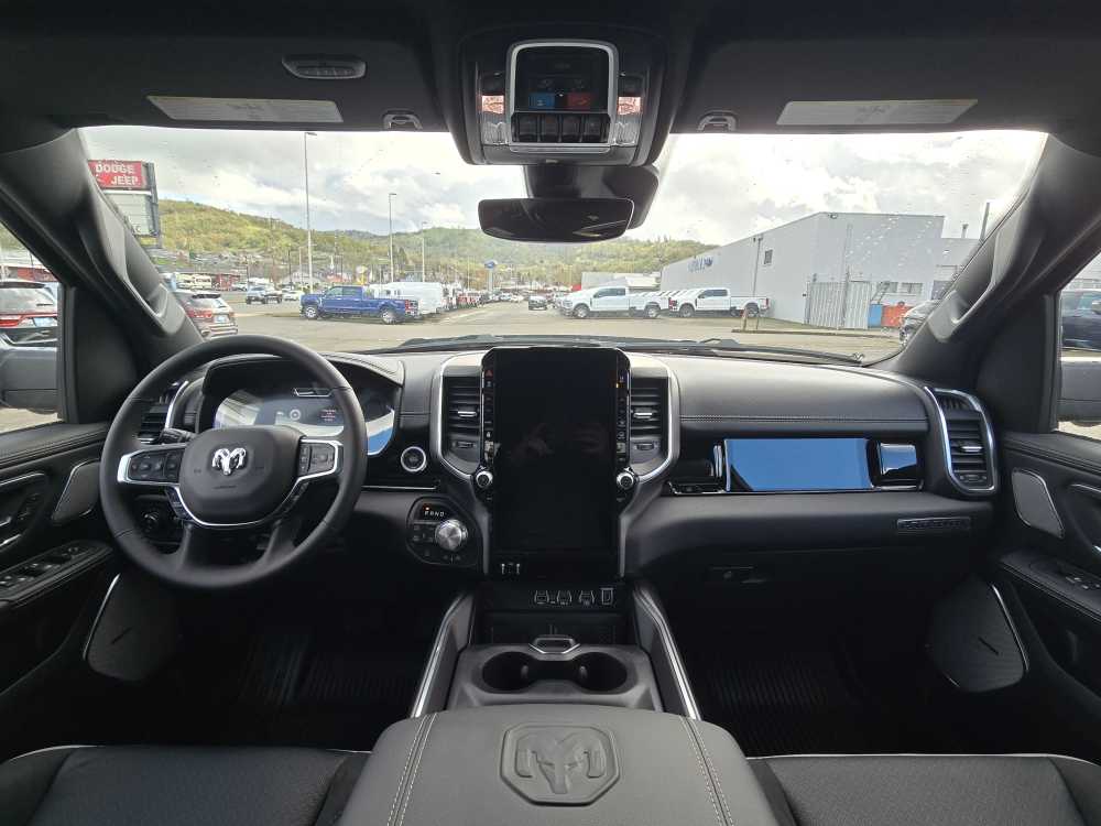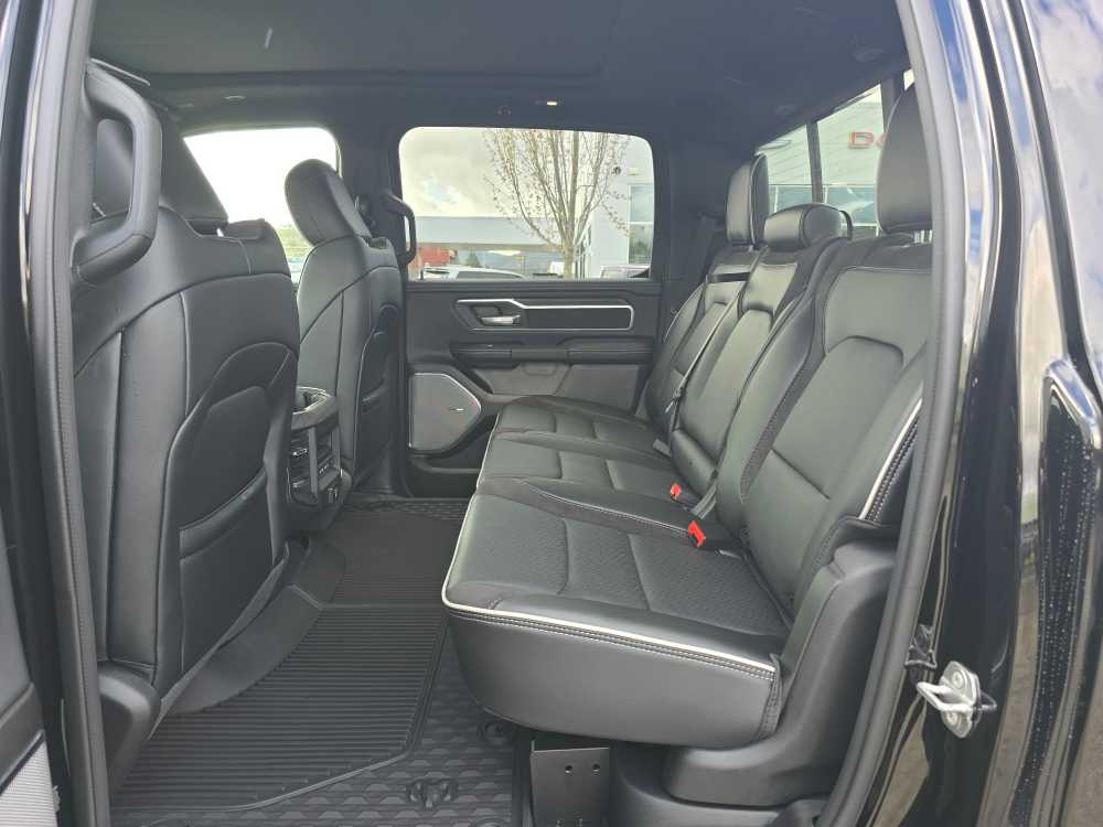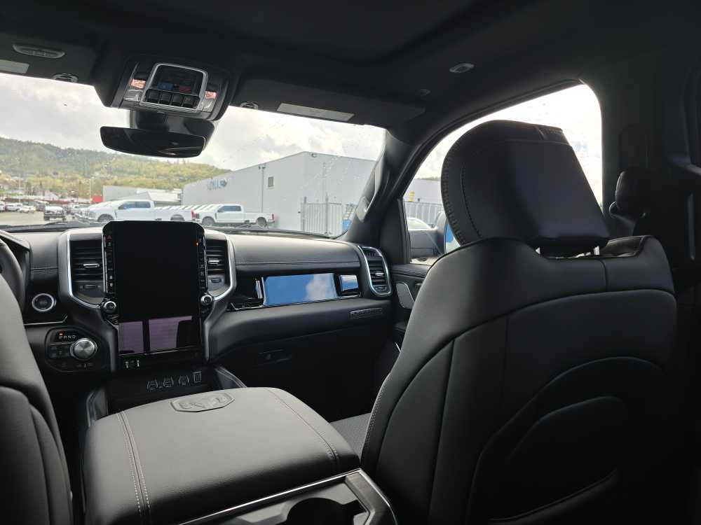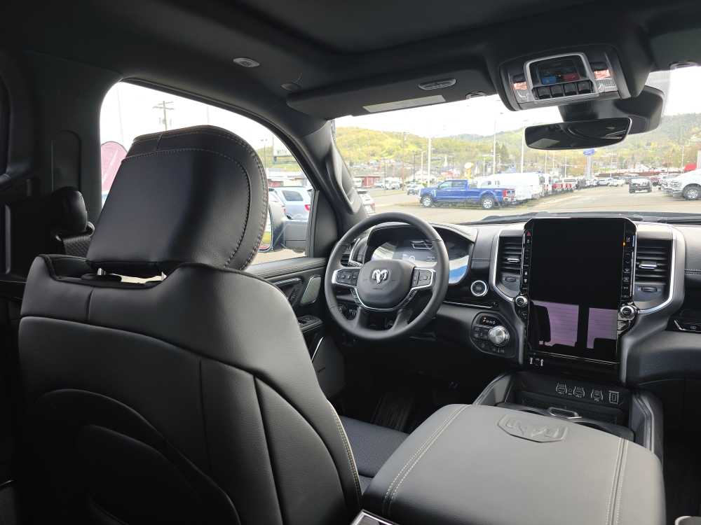 NIGHT EDITION Black Headlamp Bezels, Wheels: 22 x 9 Forged Aluminum, Tires: 285/45R22XL BSW All Season, Pirelli Brand Tires, Proximity Approach/Departure Lamps, Anti-Spin Differential Rear Axle, Accent Color Door Handles, Black Interior Accents, Body Color Front Bumper, Grille Surround 3 Black Texture 2 Black, Body Color Rear Bumper w/Step Pads, RAM Grille Badge - Black, Black Painted Exterior Mirrors Caps, Exterior Mirrors Approach Lamps, Accent Color Premium Power Mirrors, Sport Performance Hood, Black Exterior Truck Badging, Accent Color Tailgate Handle, Dual Exhaust w/Black Tips, Black Tail Lamp Bezels, LARAMIE LEVEL 2 EQUIPMENT GROUP Rain Sensitive Windshield Wipers, 14.4 Touchscreen Display, Front Passenger Interactive Display, Radio: Uconnect 5 Nav w/14.4 Display, harman/kardon® 19 Speaker Premium Sound, Cluster 12 TFT Color Display, Power Tailgate, DUAL-PANE PANORAMIC SUNROOF LED Dome/Reading Lamp, Dome Dual LED Reading Lamp, OFF ROAD GROUP Off Road Decals, Steering Gear Skid Plate, Falken Brand Tires, Raised Ride Height, Front Extra HD Shock Absorbers, Rear Extra HD Shock Absorbers, Full Size Spare Tire, Tow Hooks, E-Locker Rear Axle, Transfer Case Skid Plate, Fuel Tank Skid Plate, Selec-Speed Control, MOPAR FRONT & REAR RUBBER FLOOR MATS, TRANSMISSION: 8-SPEED AUTOMATIC (8HP75) (STD). Ram Laramie with Diamond Black Crystal Pearlcoat exterior and Black interior features a Straight 6 Cylinder Engine with 420 HP at 5200 RPM*.