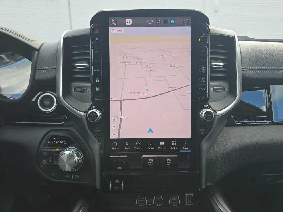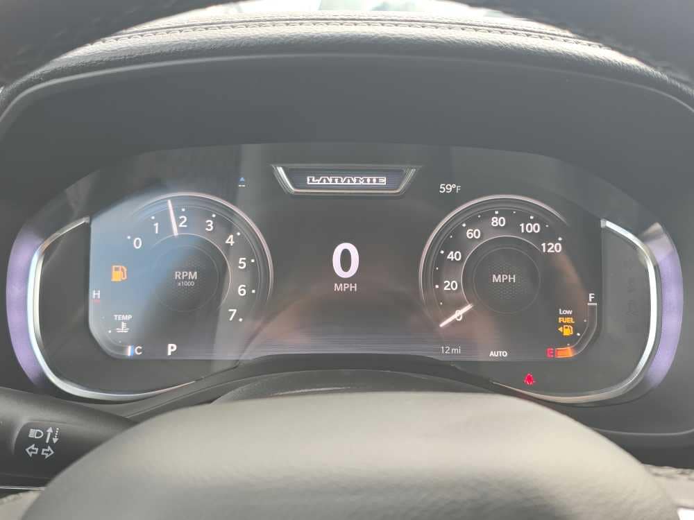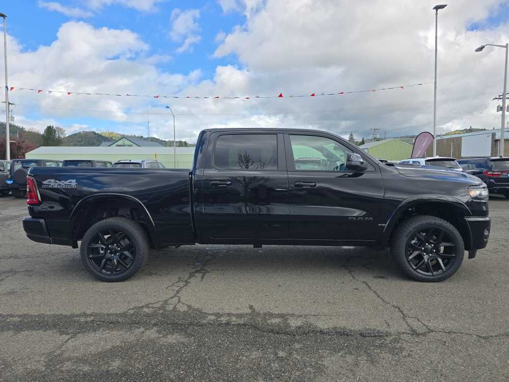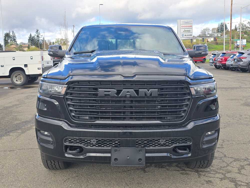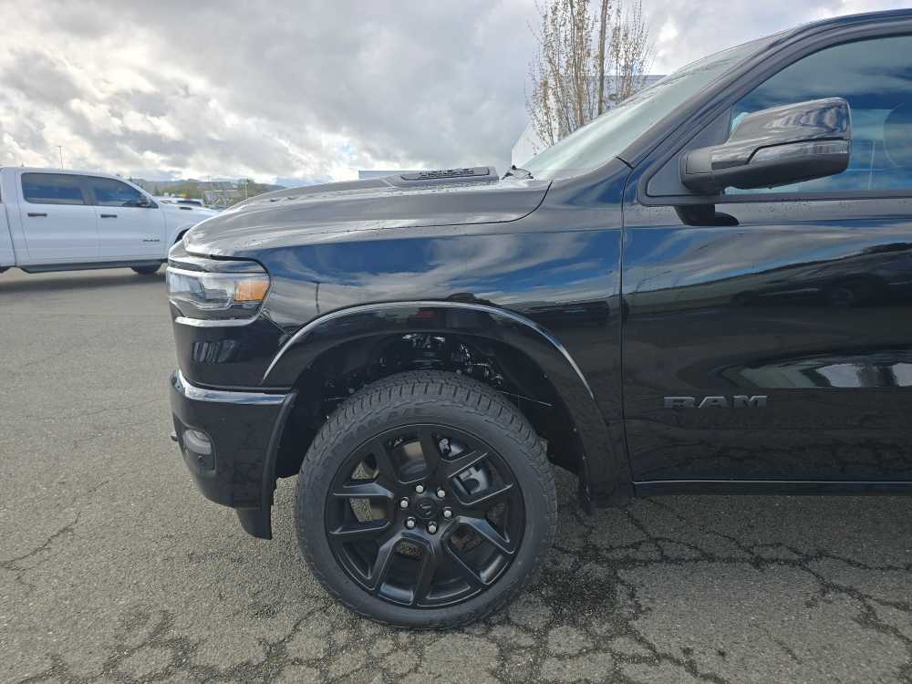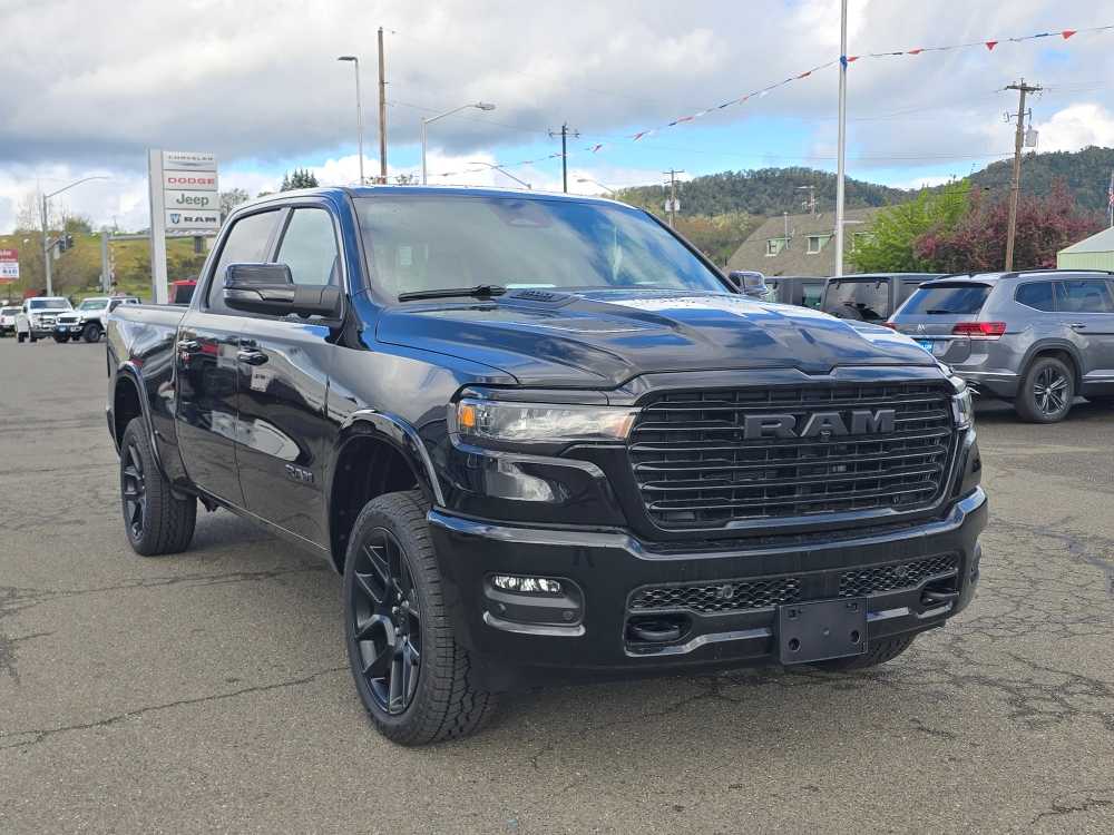 NIGHT EDITION Black Headlamp Bezels, Wheels: 22 x 9 Forged Aluminum, Tires: 285/45R22XL BSW All Season, Pirelli Brand Tires, Proximity Approach/Departure Lamps, Anti-Spin Differential Rear Axle, Accent Color Door Handles, Black Interior Accents, Body Color Front Bumper, Grille Surround 3 Black Texture 2 Black, Body Color Rear Bumper w/Step Pads, RAM Grille Badge - Black, Black Painted Exterior Mirrors Caps, Exterior Mirrors Approach Lamps, Accent Color Premium Power Mirrors, Sport Performance Hood, Black Exterior Truck Badging, Accent Color Tailgate Handle, Dual Exhaust w/Black Tips, Black Tail Lamp Bezels, LARAMIE LEVEL 2 EQUIPMENT GROUP Rain Sensitive Windshield Wipers, 14.4 Touchscreen Display, Front Passenger Interactive Display, Radio: Uconnect 5 Nav w/14.4 Display, harman/kardon® 19 Speaker Premium Sound, Cluster 12 TFT Color Display, Power Tailgate, DUAL-PANE PANORAMIC SUNROOF LED Dome/Reading Lamp, Dome Dual LED Reading Lamp, OFF ROAD GROUP Off Road Decals, Steering Gear Skid Plate, Falken Brand Tires, Raised Ride Height, Front Extra HD Shock Absorbers, Rear Extra HD Shock Absorbers, Full Size Spare Tire, Tow Hooks, E-Locker Rear Axle, Transfer Case Skid Plate, Fuel Tank Skid Plate, Selec-Speed Control, MOPAR FRONT & REAR RUBBER FLOOR MATS, TRANSMISSION: 8-SPEED AUTOMATIC (8HP75) (STD). Ram Laramie with Diamond Black Crystal Pearlcoat exterior and Black interior features a Straight 6 Cylinder Engine with 420 HP at 5200 RPM*.