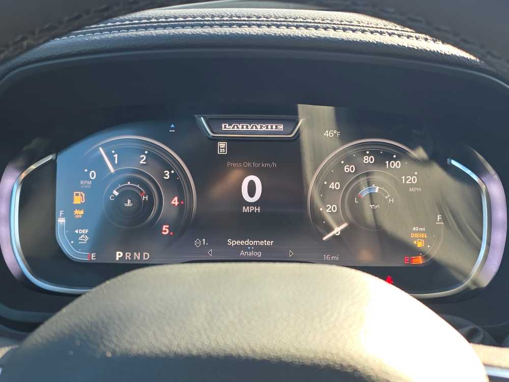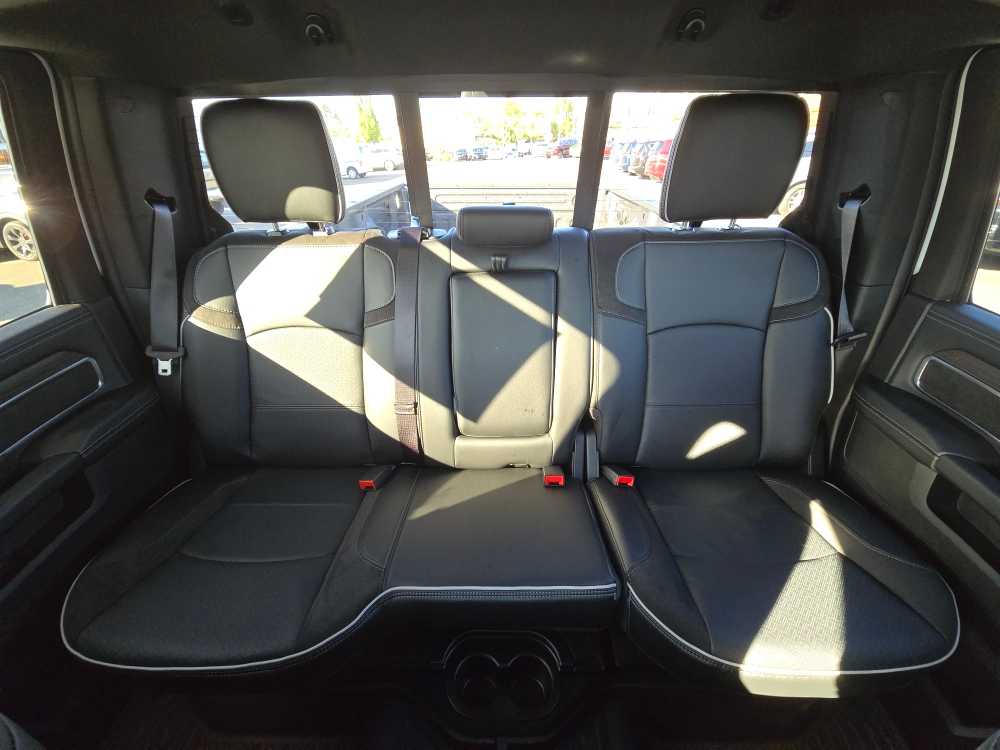 ENGINE: 6.7L I6 CUMMINS HO TURBO DIESEL Selective Catalytic Reduction (Urea), Dual 730 Amp Maintenance Free Batteries, Cummins Turbo Diesel Badge, Heavy Duty Engine Cooling, Diesel Exhaust Brake, Supplemental Heater, 3.42 Axle Ratio, Front Bumper Sight Shields, Capless Fuel Fill w/o Discriminator, GVWR: 11,040 lbs, NIGHT EDITION Tires: LT285/60R20E OWL On/Off Road, Black Exterior Truck Badging, Wheels: 20 x 8.0 Black Painted Aluminum, Gloss Black Grille Billets/Accents, Body Color Grille-Surround, Sport Performance Hood, Black Exterior Mirrors, LARAMIE LEVEL 1 PLUS EQUIPMENT GROUP CTR Stop Lamp w/Cargo View Camera, Rain Sensitive Windshield Wipers, Power Adjustable Pedals w/Memory, LED Bed Lighting, Traffic Sign Recognition, Adaptive Steering System, Auto Dim Exterior Mirror, Anti-Spin Differential Rear Axle, Heated Second Row Seats, Drowsy Driver Detection, MOPAR Deployable Bed Step, Foam Bottle Insert (Door Trim Panel), Active Lane Management System, Power Heated Fold Telescopic Mirrors w/Memory, MOPAR Spray In Bedliner, Remote Tailgate Release, Auto High Beam Headlamp Control, Exterior Mirrors w/Memory, 2nd Row In Floor Storage Bins, Auto Dim Exterior Passenger Mirror, Auto Adjust In Reverse Exterior Mirrors, AUTO LEVEL REAR AIR SUSPENSION, TOWING TECHNOLOGY GROUP Surround View Camera System, Trailer Tire Pressure Monitoring System, Trailer Reverse Guidance, POWER SUNROOF, MOPAR FRONT & REAR RUBBER FLOOR MATS, TRANSMISSION: 8-SPEED TORQUEFLITE HD AUTOMATIC, BLACK, LEATHER TRIMMED BUCKET SEATS Bucket Seats, Dual Wireless Charging Pad, Ventilated Front Seats, Radio/Driver Seat/Mirrors/Pedals Memory, Full Length Upgraded Floor Console. Ram Laramie with Bright White Clearcoat exterior and Black interior features a Straight 6 Cylinder Engine with 430 HP at 2800 RPM*.