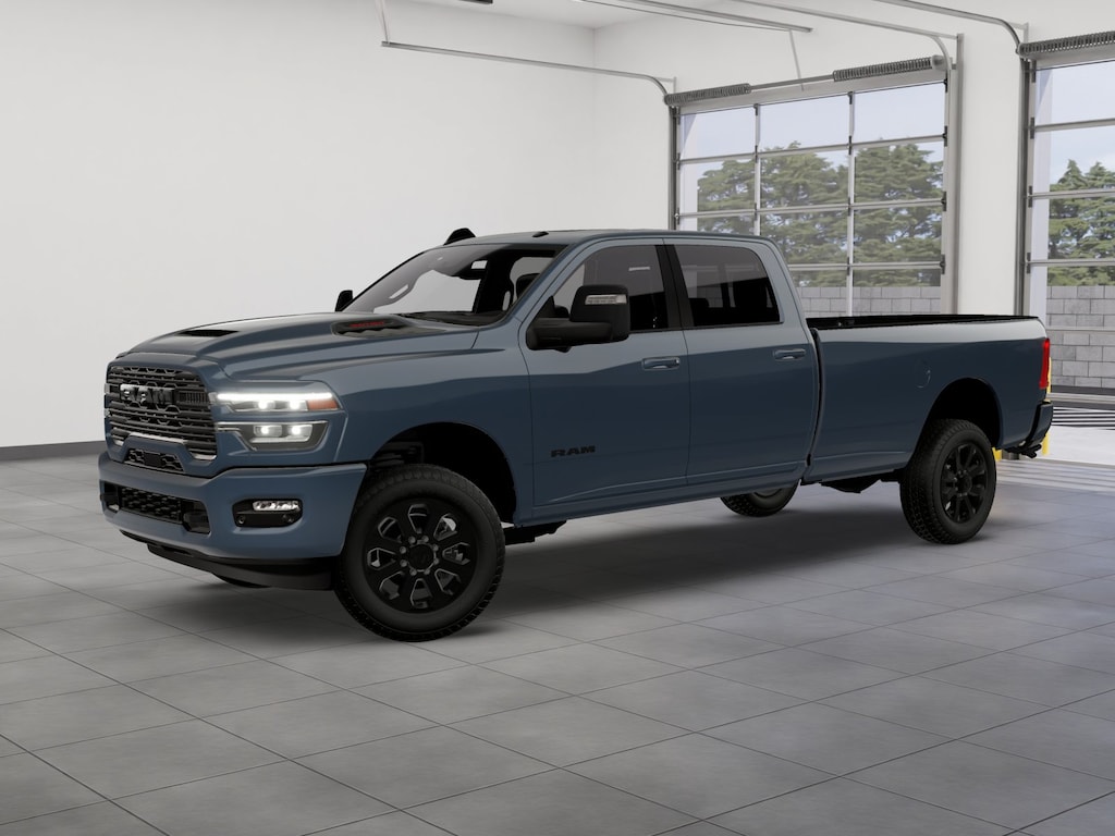 NIGHT EDITION Tires: LT285/60R20E OWL On/Off Road, Black Exterior Truck Badging, Wheels: 20 x 8.0 Black Painted Aluminum, Gloss Black Grille Billets/Accents, Body Color Grille-Surround, Sport Performance Hood, Black Exterior Mirrors, LARAMIE LEVEL 1 PLUS EQUIPMENT GROUP CTR Stop Lamp w/Cargo View Camera, Rain Sensitive Windshield Wipers, Power Adjustable Pedals w/Memory, LED Bed Lighting, Traffic Sign Recognition, Adaptive Steering System, Auto Dim Exterior Mirror, Anti-Spin Differential Rear Axle, Heated Second Row Seats, Drowsy Driver Detection, MOPAR Deployable Bed Step, Foam Bottle Insert (Door Trim Panel), Active Lane Management System, Power Heated Fold Telescopic Mirrors w/Memory, MOPAR Spray In Bedliner, Remote Tailgate Release, Auto High Beam Headlamp Control, Exterior Mirrors w/Memory, 2nd Row In Floor Storage Bins, Auto Dim Exterior Passenger Mirror, Auto Adjust In Reverse Exterior Mirrors, TOWING TECHNOLOGY GROUP Surround View Camera System, Trailer Tire Pressure Monitoring System, Trailer Reverse Guidance, POWER SUNROOF, TRANSMISSION: 8-SPEED AUTO (8HP75-LCV) (STD), ENGINE: 6.4L V8 HEMI HD (STD), BLACK, LEATHER TRIMMED BUCKET SEATS Bucket Seats, Dual Wireless Charging Pad, Ventilated Front Seats, Radio/Driver Seat/Mirrors/Pedals Memory, Full Length Upgraded Floor Console. Ram Laramie with Forged Blue Metallic exterior and Black interior features a 8 Cylinder Engine with 405 HP at 5600 RPM*.