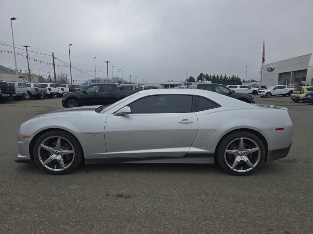 RS PACKAGE includes (Q9K) 20 x 8 front and 20 x 9 rear flangeless, painted aluminum wheels with midnight silver finish, (BD8) body-color roof ditch molding, (T4F) high intensity discharge headlamps and RS unique tail lamps, SUNROOF, POWER WITH EXPRESS OPEN AND VENTING, ENGINE, 6.2L V8 SFI (426 hp [317.6 kW] @ 5900 rpm, 420 lb-ft of torque [567.0 N-m] @ 4600 rpm) (STD), TRANSMISSION, 6-SPEED MANUAL (STD), AUDIO SYSTEM, AM/FM STEREO WITH CD-ROM AND MP3 PLAYBACK music navigator, Graphic Information Display (GID) and auxiliary input jack, includes outside temperature display (STD). 2010 Chevrolet Camaro with Silver Ice Metallic exterior and Black interior features a 8 Cylinder Engine with 426 HP at 5900 RPM*. Non-Smoker vehicle
