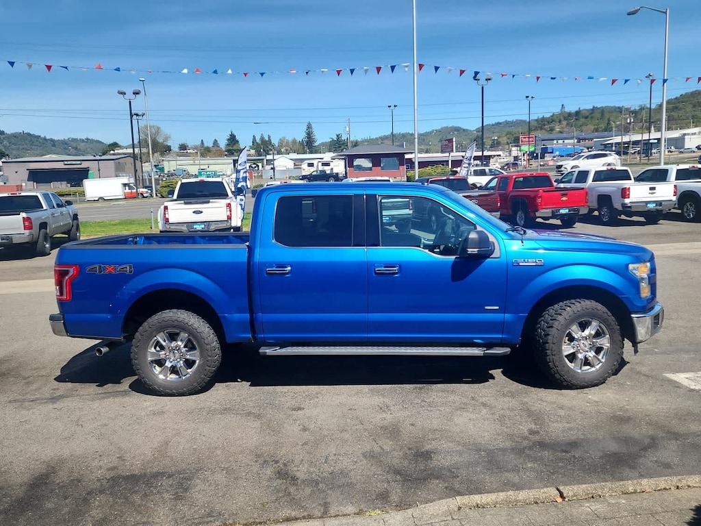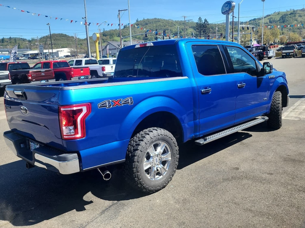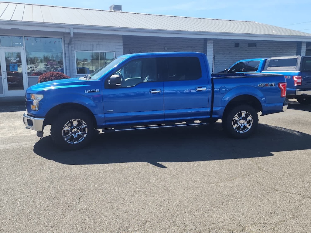 EQUIPMENT GROUP 301A MID Radio: Single-CD w/SiriusXM Satellite, SiriusXM US satellite service is available in the 48 contiguous United States and D.C, 7 speakers, Rear View Camera w/Dynamic Hitch Assist, Class IV Trailer Hitch Receiver, smart trailer tow connector and 4-pin/7-pin wiring harness, Leather-Wrapped Steering Wheel, 8-Way Power Drivers Seat, power driver lumbar and manual passenger lumbar, Rear Window Defroster, 4.2 Productivity Screen in Instrument Cluster, Power Glass Heated Sideview Mirrors, Manual folding, turn signal, auto-dimming feature (drivers side) and black skull caps, Auto-Dimming Rearview Mirror, Power Driver/Manual Passenger Lumbar, Power-Adjustable Pedals, Fixed Backlight w/Privacy Glass, Rear Under-Seat Storage, XLT CHROME APPEARANCE PACKAGE 2 chrome front tow hooks, Single-Tip Chrome Exhaust, Tires: P275/65R18 OWL Automatic Transmission, Chrome Door & Tailgate Handles w/Body-Color Bezel, bezel on side doors and black on tailgate, Wheels: 18 Chrome-Like PVD, Chrome Billet Style Grille w/Chrome Surround, black mesh insert, Chrome Step Bars, ENGINE: 2.7L V6 ECOBOOST start/stop system, 3.55 Axle Ratio, GVWR: 6,500 lbs Payload Package. 2015 Ford F-150 with Blue Flame Metallic exterior and Medium Earth Gray interior features a V6 Cylinder Engine with 282 HP at 6250 RPM*. Non-Smoker vehicle