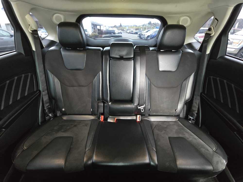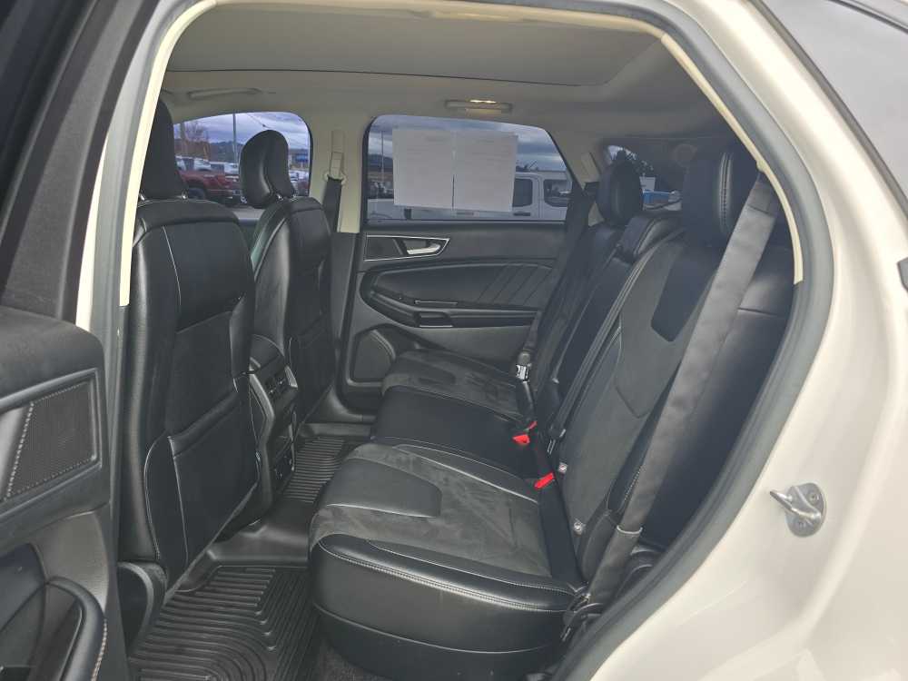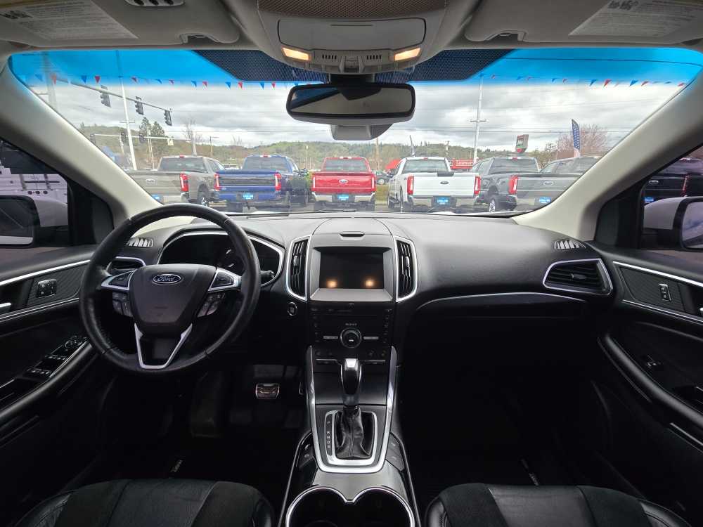 EQUIPMENT GROUP 401A HID Projector-Style Headlamps w/Auto High Beams, Rain-Sensing Wipers, front only, Heated Rear-Seats, Front 180 Degree Camera, split view and camera washer, Enhanced Active Park Assist System, parallel parking, park out assist, reverse perpendicular parking and forward and side sensing systems, Lane-Keeping System, Heated/Cooled Front Seats, Technology Package, Blind Spot Information System (BLIS), cross traffic alert, Radio: AM/FM Stereo w/Single CD/Navigation, voice-activated touch-screen navigation w/Pinch-to-Zoom capability, SiriusXM Traffic & Travel Link, services are not available in Alaska or Hawaii, SiriusXM audio and data services each require a subscription sold separately, or as a package, by Sirius XM Radio Inc, If you decide to, PANORAMIC VISTA ROOF power open/close w/power shade and acoustic-laminate glass, Standard single LED dome reading light replaced w/two single lights, Switch located in each grab handle pocket, ADAPTIVE CRUISE CONTROL W/COLLISION WARNING brake support, WHEELS: 21 ALUM PREM PTD TARNISHED DARK LOW GLOSS Tires: 21, COLD WEATHER PACKAGE Heated Steering Wheel, Front & Rear All-Weather Floor Mats, Custom accessory, pre-installed, 2ND ROW OUTBOARD INFLATABLE SAFETY BELTS. 2016 Ford Edge with White Platinum Metallic Tri-Coat exterior and Ebony interior features a V6 Cylinder Engine with 315 HP at 4750 RPM*. Non-Smoker vehicle