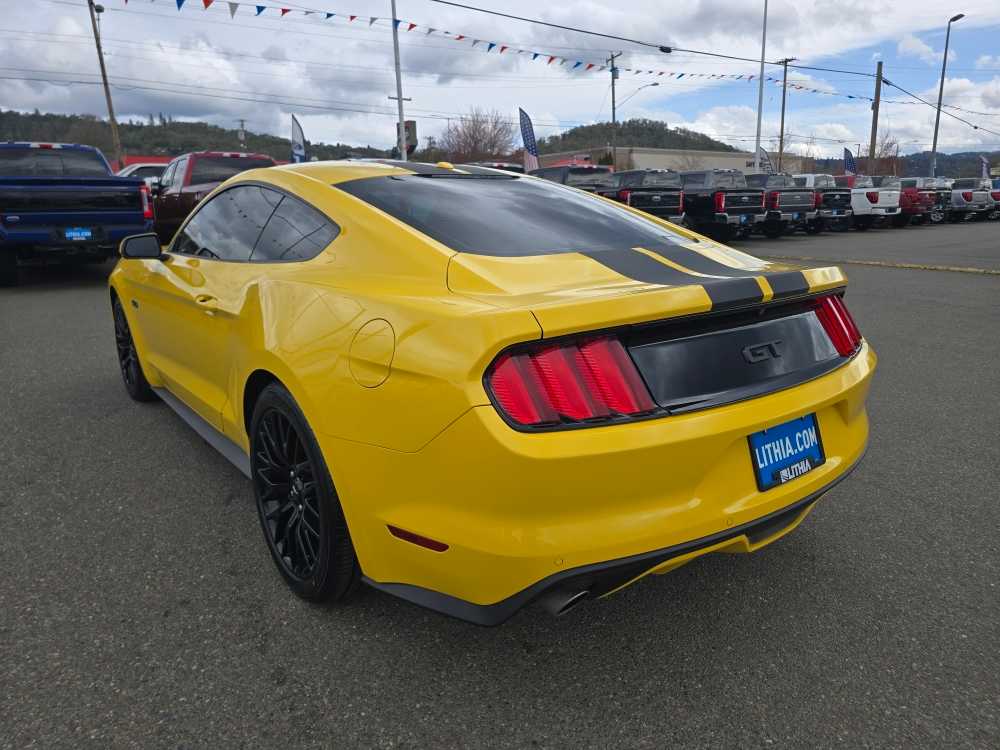 GT PERFORMANCE PACKAGE Brembo 6-piston front brake calipers, K-brace, strut-tower brace, unique chassis tuning, unique electronic power assisted steering, unique anti-lock brakes, Engine Turn Aluminum Instrument Panel, HD Front Springs, Spoiler Delete, Unique Stability Control, 3.73 TORSEN Limited-Slip Rear Axle Ratio, Wheels: 19 x 9 Fr & 19 x 9.5 Rr Ebony Black, Painted aluminum, Larger Radiator, Larger Brake Rotors, Tires: 255/40R19 Fr & 275/40R19 Rr Summer-Only, Gauge Pack (Oil Pressure and Vacuum), EQUIPMENT GROUP 401A Blind Spot Info System w/Cross-Traffic Alert, Shaker Pro Audio System, 12 speakers, Memory Driver Seat, Mirrors & Ambient Lighting, 3 settings, HD Radio, VOICE-ACTIVATED TOUCH-SCREEN NAVIGATION SYSTEM SiriusXM Traffic and Travel Link w/a, SYNC services are not available in AK and HI, SiriusXM audio and data services each require a subscription sold seperately, or as a package, by SiriusXM Radio Inc, If you decide to continue service after your trial, the subsription plan you choose will automatically renew thereafter and you will be charged according to your chosen payment method at then-current rates, Fees and taxes apply, REVERSE SENSING SYSTEM, ENGINE: 5.0L TI-VCT V8 (STD). 2016 Ford Mustang with Triple Yellow Tri-Coat exterior and Ebony interior features a 8 Cylinder Engine with 435 HP at 6500 RPM*. Non-Smoker vehicle