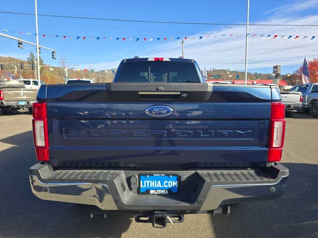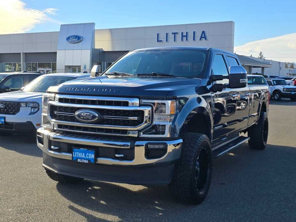 ENGINE: 6.7L 4V OHV POWER STROKE V8 TURBO DIESEL B20 manual push-button engine-exhaust braking and intelligent oil-life monitor, 48 Gallon Fuel Tank, 240 Amp Alternator, GVWR: 12,000 lb Payload Package, 3.31 Axle Ratio, Dual 78-AH 750 CCA Batteries, LARIAT ULTIMATE PACKAGE Power Heated/Ventilated Driver Seat w/Memory, PowerScope Trailer Tow Mirrors w/Memory, EASY ENTRY®/Exit Memory Drivers Seat Feature, Tailgate Step & Handle, LED Box Lighting, LED Center High-Mounted Stop Lamp (CHMSL), Intelligent Access w/Push-Button Start, Power Heated/Ventilated Passenger Seat, Voice-Activated Touchscreen Navigation System, pinch-to-zoom capability, SiriusXM Radio Traffic and Travel Link, Note: SiriusXM Traffic and Travel Link includes a, SiriusXM Traffic and Travel Link services are not available in Alaska and Hawaii, After your trial period ends, SiriusXM audio and data services each require a subscription sold separately, or as a package, by SiriusXM Radio Inc, See SiriusXM customer agreement for complete terms at, PRO TRAILER BACKUP ASSIST Ultimate Trailer Tow Camera System, rear view camera, 360 degree camera system, rear CHMSL camera, trailer reverse guidance and LED center high-mounted stop lamp, TWIN PANEL POWER MOONROOF map lights and moonroof switches, QUAD BEAM LED HEADLAMPS & LED TAILLAMPS LED fog lamps and LED Center High-Mounted Stop Lamp (CHMSL), CHROME PACKAGE 2 front chrome tow hooks, Unique Chrome Mirror Caps, Wheels: 18 Chrome PVD Aluminum, Body-Color Door Handles w/Chrome Insert, 6 Angular Chrome Step Bars, Chrome Exhaust Tip, ADAPTIVE CRUISE CONTROL & COLLISION WARNING brake support, TOUGH BED SPRAY-IN BEDLINER tailgate-guard, black box bed tie-down hooks and black bed attachment bolts, ELECTRONIC-LOCKING W/3.55 AXLE RATIO, HEATED REAR SEATS, WINDSHIELD WIPER DE-ICER rain-sensing windshield wipers, Heated Steering Wheel, UNIVERSAL GARAGE DOOR OPENER (UGDO), TRANSMISSION: TORQSHIFT 10-SPEED AUTOMATIC SelectShift and selectable drive modes: normal, tow/haul, eco, deep sand/snow and slippery (STD). 2020 Ford Super Duty F-350 SRW Pickup with Blue Jeans Metallic exterior and Black interior features a 8 Cylinder Engine with 475 HP at 2600 RPM*. Non-Smoker vehicle