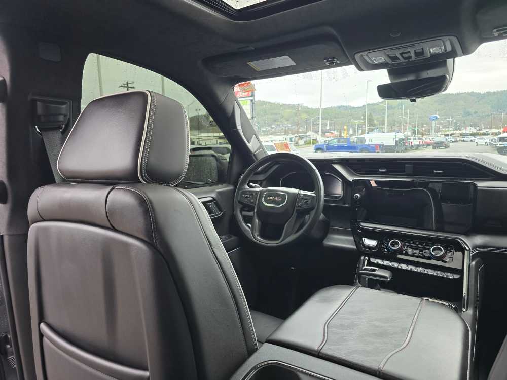 AT4X AEV EDITION includes (PZG) AEV front chassis skid plate, (PZN) AEV transfer case skid plate, (VPS) AEV Stamped-steel Rear Bumper with heavy duty cast recovery points, (Q89) 18 12-spoke High Gloss Black aluminum wheels with laser etching and AEV center cap, (PZL) AEV rear differential skid plate, (NAA) Rocker protection, (AAO) AEV Branded floor liners, (PZ9) AEV fuel tank skid plate, black gloss door handles, AEV branded front head restraints and tailgate decal with exterior badging (Certain vehicles built between April 1st through July 1st will be forced to include (R9S) Not Equipped with Rocker Guards, which removes (NAA) Rocker Protection. See dealer for details or the window label for the features on a specific vehicle. THUNDERSTORM GRAY, AUDIO SYSTEM, 13.4 DIAGONAL PREMIUM GMC INFOTAINMENT SYSTEM WITH GOOGLE BUILT IN APPS SUCH AS NAVIGATION AND VOICE ASSISTANCE, INCLUDES COLOR TOUCH-SCREEN, MULTI-TOUCH DISPLAY, AM/FM STEREO Bluetooth® streaming audio for music and most phones; featuring wireless Android Auto® and Apple CarPlay® capability for compatible phones (STD), TRANSMISSION, 10-SPEED AUTOMATIC WITH ELECTRONIC PRECISION SHIFT, ELECTRONICALLY CONTROLLED with overdrive, tow/haul mode and steering column paddle shifters. Includes Cruise Grade Braking and Powertrain Grade Braking (STD), LPO, MULTIPRO AUDIO SYSTEM BY KICKER (dealer-installed). GMC AT4X with Thunderstorm Gray exterior and Obsidian Rush interior features a Straight 6 Cylinder Engine with 305 HP at 3750 RPM*. Non-Smoker vehicle