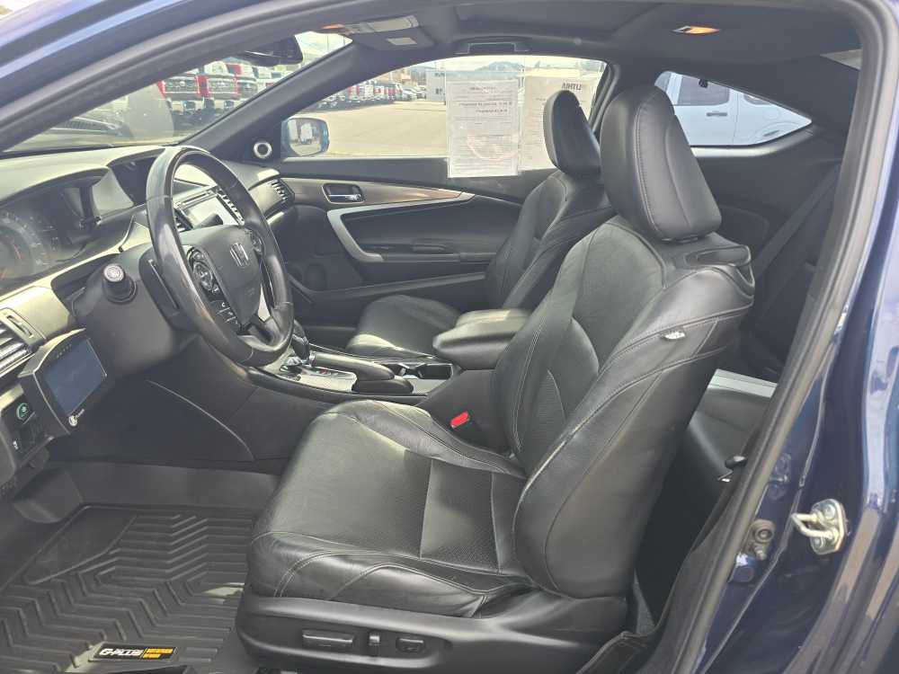 Leather Seats, Sunroof, Heated Driver Seat, Back-Up Camera, Premium Sound System, Satellite Radio, iPod/MP3 Input, Onboard Communications System, Aluminum Wheels, Remote Engine Start, Dual Zone A/C, Smart Device Integration, Heated Seats, Heated Leather Seats Rear Spoiler, MP3 Player, Remote Trunk Release, Keyless Entry, Steering Wheel Controls. 2016 Honda Accord Coupe with Deep Blue Opal Metallic exterior and Black interior features a V6 Cylinder Engine with 278 HP at 6200 RPM*. Non-Smoker vehicle