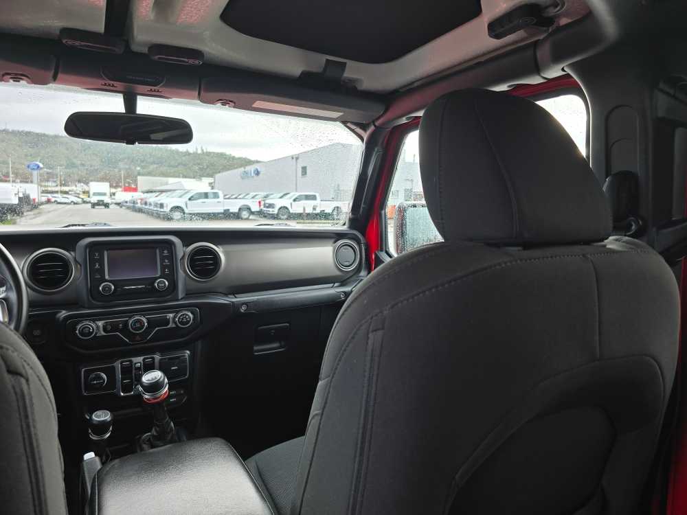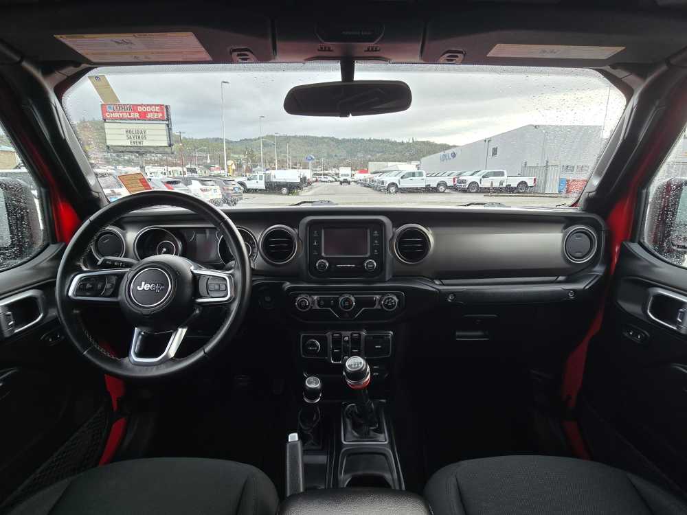 QUICK ORDER PACKAGE 23S Engine: 3.6L Pentastar VVT V6 w/ESS, Transmission: 6-Speed Manual, Speed-Sensitive Power Locks, Automatic Headlamps, Leather-Wrapped Steering Wheel, Deep-Tint Sunscreen Windows, Power Windows w/Front 1-Touch Down, Power Heated Exterior Mirrors, Security Alarm, Power Tailgate Lock, Remote Keyless Entry, Sun Visors w/Illuminated Vanity Mirrors, BLACK 3-PIECE HARD TOP: Freedom Panel Storage Bag, Rear Window Defroster, Rear Sliding Window, No Soft Top, ROLL-UP TONNEAU COVER, TRAILER TOW PACKAGE: Trailer Hitch Zoom, Class IV Hitch Receiver, Heavy Duty Engine Cooling, 240 Amp Alternator, AUXILIARY SWITCH GROUP: 700 Amp Maintenance Free Battery, 240 Amp Alternator, Auxiliary Switches, SIRIUSXM SATELLITE RADIO: For More Info, Call 800-643-2112, GPS Antenna Input, TRANSMISSION: 6-SPEED MANUAL (STD), ENGINE: 3.6L PENTASTAR VVT V6 W/ESS (STD). Jeep Sport S with Firecracker Red exterior and Black interior features a V6 Cylinder Engine with 285 HP at 6400 RPM*. Non-Smoker vehicle