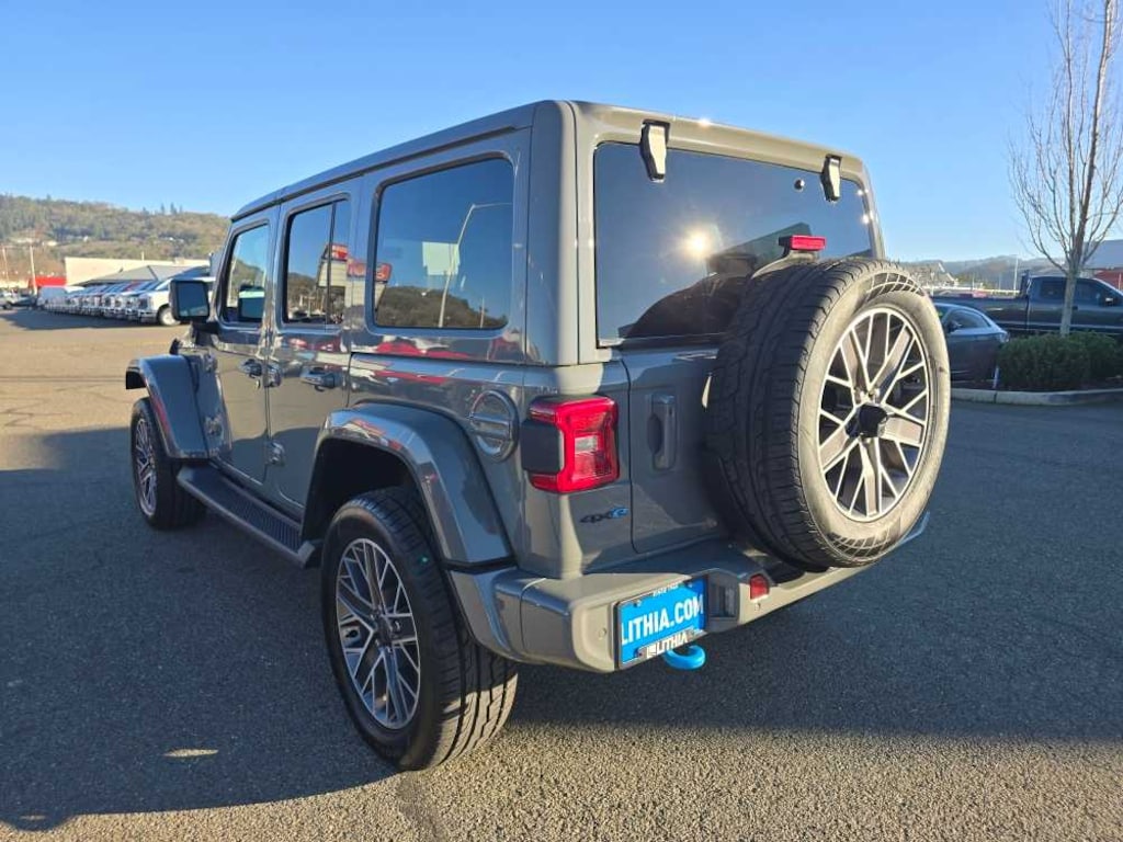 QUICK ORDER PACKAGE 29N HIGH ALTITUDE Engine: 2.0L I4 DOHC DI Turbo PHEV, Transmission: 8-Speed Auto 8P75PH PHEV, Summit Badging, Freedom Panel Storage Bag, Rear Window Defroster, Rear Window Wiper/Washer, No Soft Top, High Altitude Package, Exterior Mirrors w/Supplemental Signals, Blind Spot & Cross Path Detection, ParkSense Rear Park Assist System, Body Color Door Handles, Body Color Power Locking Fuel Filler Door, Wrapped I/P Bezel w/Caramel Stitch, Body Color Grille w/Gloss Black Rings, Body Color Front Bumper, Premium Dark Exterior Accents, Body Color Rear Bumper w/Step Pads, ANTI-SPIN DIFFERENTIAL REAR AXLE, REMOTE START SYSTEM, TRANSMISSION: 8-SPEED AUTO 8P75PH PHEV (STD), ENGINE: 2.0L I4 DOHC DI TURBO PHEV (STD). Jeep Unlimited Sahara High Altitude with Sting-Gray Clearcoat exterior and Black interior features a 4 Cylinder Engine with 375 HP at 5250 RPM*. Non-Smoker vehicle