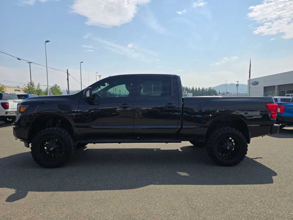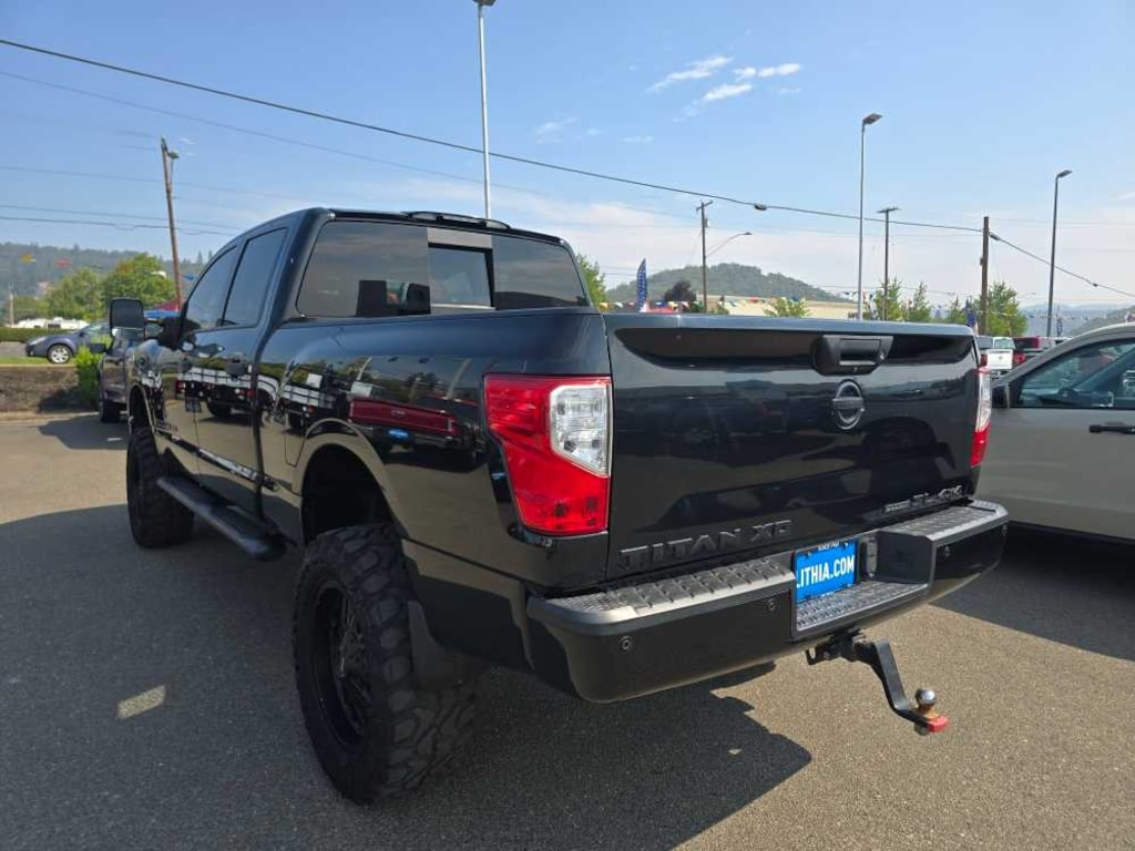 MIDNIGHT EDITION midnight edition exterior badge and black fender louver, Body Color Front Grille w/Dark Insert, Black Mirrors & Door Handles, Wheels: 20 x 7.5 Black Painted, Charcoal Interior Trim, Fog Lamps w/Black Fog Lamp Finishers, Black Exterior Badging, Black Step Rails, Body Color Front & Rear Bumpers, Dark Headlamps. 2019 Nissan Titan XD with Magnetic Black Metallic exterior and Black interior features a 8 Cylinder Engine with 310 HP at 3200 RPM*. Non-Smoker vehicle