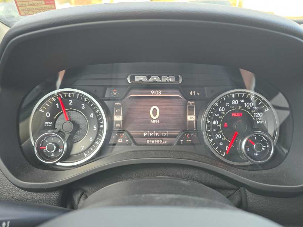 BIG HORN LEVEL 2 EQUIPMENT GROUP Radio: Uconnect 4 w/8.4 Display, Rear Window Defroster, ParkSense Front/Rear Park Assist w/Stop, Rear View Auto Dim Mirror, Power Adjustable Pedals, Rear Power Sliding Window, Rear Dome w/On/Off Switch Lamp, Glove Box Lamp, Power 4-Way Driver Lumbar Adjust, 115V Auxiliary Rear Power Outlet, Power 8-Way Driver Seat, 2 USB Full Function/Charge Only Media Hub, Heated Front Seats, Heated Steering Wheel, Foam Bottle Insert (Door Trim Panel), Class IV Receiver Hitch, Dampened Tailgate, Security Alarm, Black Premium Power Mirrors, Big Horn IP Badge, Remote Start System, SiriusXM Satellite Radio, 400W Inverter, Air Conditioning ATC w/Dual Zone Control, 115V Auxiliary Power Outlet, Universal Garage Door Opener, 2nd Row In Floor Storage Bins, Sun Visors, WHEELS: 20 X 9 ALUMINUM CHROME CLAD (WRK), ENGINE: 5.7L V8 HEMI MDS VVT Active Noise Control System, 180 Amp Alternator, Heavy Duty Engine Cooling, GVWR: 7,100 lbs, Dual Rear Exhaust w/Bright Tips, Hemi Badge, BLIND SPOT & CROSS PATH DETECTION LED Taillamps, TRANSMISSION: 8-SPEED AUTOMATIC (8HP75). Ram Big Horn with Granite Crystal Met. Clear Coat exterior and Black interior features a 8 Cylinder Engine with 305 HP at 6400 RPM*.