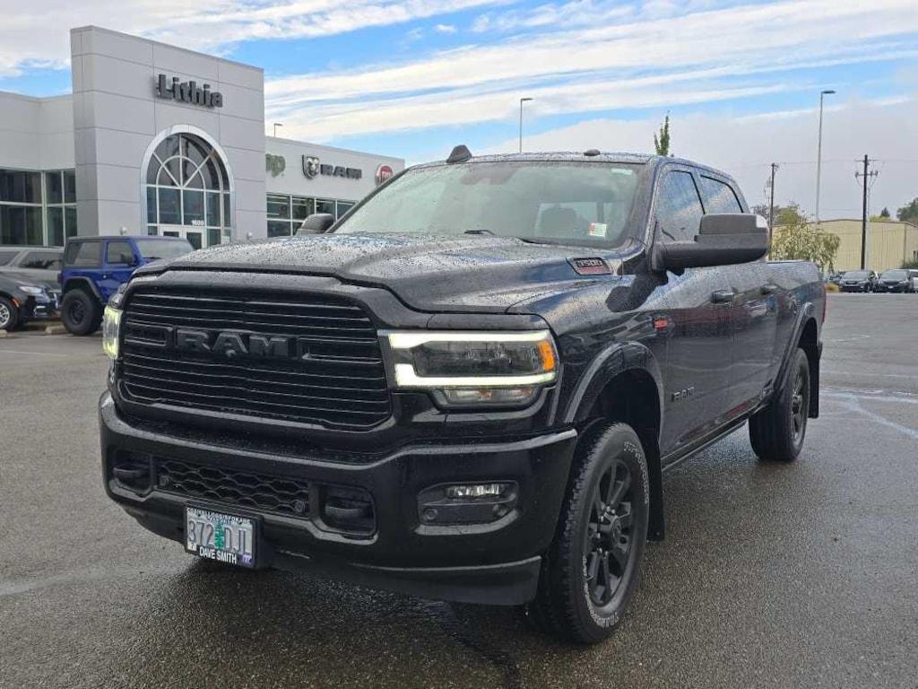 LARAMIE LEVEL 2 EQUIPMENT GROUP Blind Spot & Cross Path Detection, Power Chrome Tow Mirrors w/Convex Spotter & Memory, Mirror-Mounted Aux Reverse Lamps, Exterior Mirrors w/Memory, Power Adjustable Convex Aux Mirrors, Rain Sensitive Windshield Wipers, Power Adjustable Pedals w/Memory, Radio: Uconnect 4C Nav w/8.4 Display, SiriusXM Traffic Plus, Disassociated Touchscreen Display, HD Radio, For Details Visit DriveUconnect.com, 1-Year SiriusXM Guardian Trial, GPS Navigation, SiriusXM Travel Link, Ventilated Front Seats, Media Hub w/2 Charge Only USBs, Remote Tailgate Release, 17 Speaker harman/kardon Premium Sound, Auto High Beam Headlamp Control, Heated Second Row Seats, Foam Bottle Insert (Door Trim Panel), 2nd Row In, NIGHT EDITION Mirror-Mounted Aux Reverse Lamps, Black Ram Head Tailgate Badge, Wheels: 20 x 8.0 Black Painted Aluminum, Black Wheel Center Hub, Black Headlamp Bezels, Body Color Door Handles, Painted Front Bumper, Painted Rear Bumper, Tires: LT285/60R20E OWL On/Off Road, Black Exterior Truck Badging, Exterior Mirrors w/Memory, Gloss Black Grille Billets/Accents, Body Color Grille Surround, Black Interior Accents, Black Exterior Mirrors, Black Tail Lamp Bezels, Power Black Tow Mirrors w/Convex Spotter & Memory, Power Adjustable Convex Aux Mirrors, TOWING TECHNOLOGY GROUP CTR Stop Lamp w/Cargo View Camera, Mirror-Mounted Aux Reverse Lamps, Surround View Camera System, Exterior Mirrors w/Memory, Power Chrome Tow Mirrors w/Convex Spotter & Memory, Trailer Reverse Guidance, Power Adjustable Convex Aux Mirrors, SAFETY GROUP Adaptive Cruise Control w/Stop, Adaptive Steering System, Full Speed Forward Collision Warning Plus, Lane Keep Assist, POWER DEPLOYABLE RUNNING BOARDS, BLACK, LEATHER TRIMMED BUCKET SEATS Bucket Seats, Power 2-Way Passenger Lumbar Adjust, Power 2-Way Driver Lumbar Adjust, Full Length Upgraded Floor Console, TRANSMISSION: 8-SPEED AUTO (8HP75-LCV) (STD), ENGINE: 6.4L HEAVY DUTY V8 HEMI W/MDS (STD). Ram Laramie with Diamond Black Crystal Pearlcoat exterior and Black interior features a 8 Cylinder Engine with 410 HP at 5600 RPM*. Non-Smoker vehicle