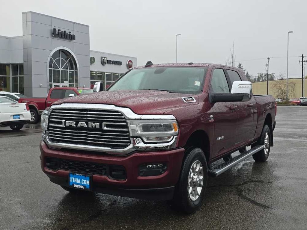 ENGINE: 6.7L I6 CUMMINS HO TURBO DIESEL Selective Catalytic Reduction (Urea), Dual 730 Amp Maintenance Free Batteries, Cummins Turbo Diesel Badge, Heavy Duty Engine Cooling, Supplemental Heater, GVWR: 12,300 lbs, Current Generation Engine Controller, Diesel Exhaust Brake, Capless Fuel Fill w/o Discriminator, LARAMIE LEVEL 1 EQUIPMENT GROUP Rear Window Defroster, Blind Spot & Cross Path Detection, Rain Sensitive Windshield Wipers, Power Adjustable Pedals w/Memory, Rear Power Sliding Window, 12 Touchscreen Display, Auto Dim Exterior Mirror, Front LED Fog Lamps, LED Reflector Headlamps, Foam Bottle Insert (Door Trim Panel), Radio: Uconnect 5 Nav w/12.0 Display, Power Heated Folding Telescopic Mirrors w/Memory, Remote Tailgate Release, Auto High Beam Headlamp Control, Exterior Mirrors w/Memory, Auto Dimming Exterior Passenger Mirror, Auto Adjust In Reverse Exterior Mirrors, ParkSense Front/Rear Park Assist System, MOPAR SPRAY IN BEDLINER, TRANSMISSION: 6-SPEED AUTOMATIC AISIN AS69RC HD Urethane Shift Control, Transmission Oil Cooler. Ram Laramie with Delmonico Red Pearlcoat exterior and Black interior features a Straight 6 Cylinder Engine with 420 HP at 2800 RPM*.