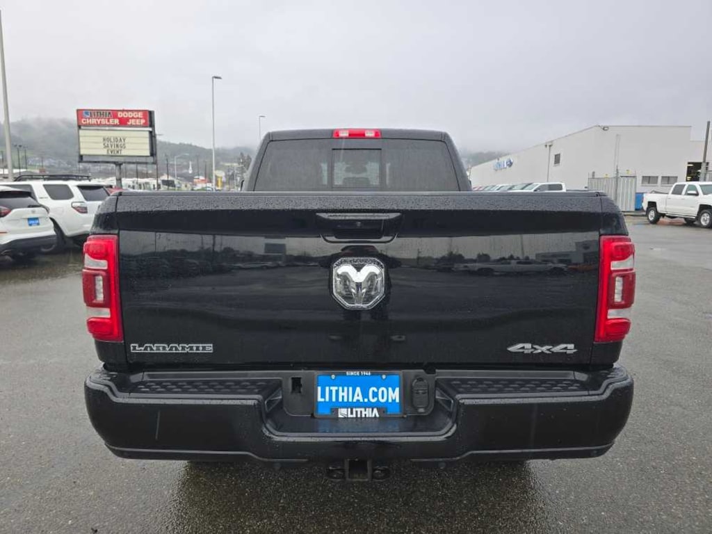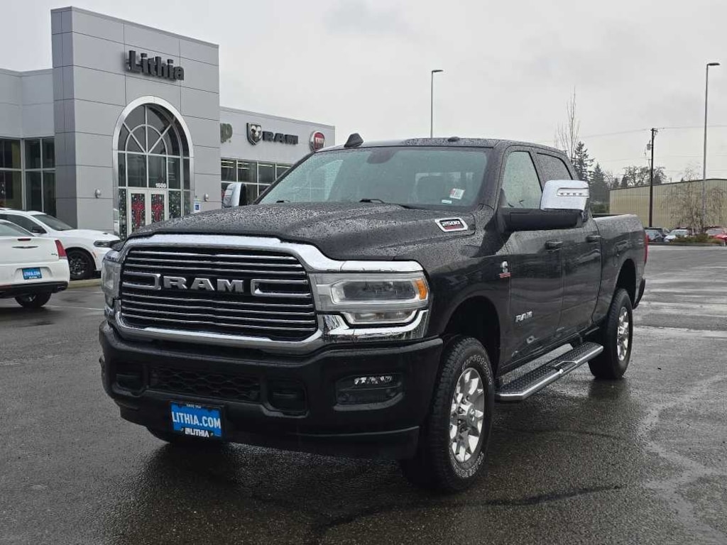 ENGINE: 6.7L I6 CUMMINS TURBO DIESEL Selective Catalytic Reduction (Urea), Dual 730 Amp Maintenance Free Batteries, Cummins Turbo Diesel Badge, Heavy Duty Engine Cooling, Supplemental Heater, 220 Amp Alternator, Tow Hooks, Diesel Exhaust Brake, Front Bumper Sight Shields, Capless Fuel Fill w/o Discriminator, CHROME FLAT CAB-LENGTH SIDE STEPS, BLACK, LEATHER TRIMMED BUCKET SEATS Bucket Seats, High Back Seats, Folding Flat Load Floor Storage, Full Length Upgraded Floor Console, LARAMIE LEVEL 1 EQUIPMENT GROUP Blind Spot & Cross Path Detection, LED Tail Lamps, Power Adjustable Pedals w/Memory, For Details, Visit DriveUconnect.com, For More Info, Call 800-643-2112, 12 Touchscreen Display, Auto Power-Folding Mirrors, Front LED Fog Lamps, Mirror Running Lights, Alexa Built-In, Power Adjustable Convex Aux Mirrors, Forward & Reverse Utility Lights, Disassociated Touchscreen Display, Remote Tailgate Release, Center Hub, 2nd Row In Floor Storage Bins, Rear Window Defroster, Rain Sensitive Windshield Wipers, Rear Power Sliding Window, GPS Navigation, Auto Dim Exterior Mirror, SiriusXM w/360L, Connected Travel & Traffic Services, LED Reflector Headlamps, Foam Bottle Insert (Door Trim Panel), Off-Road Information Pages, Selectable Tire Fill Alert, Trailer Tow Pages, HD, TRANSMISSION: 6-SPEED AUTOMATIC (68RFE). Ram Laramie with Diamond Black Crystal Pearlcoat exterior and Black interior features a Straight 6 Cylinder Engine with 410 HP at 5600 RPM*. Non-Smoker vehicle
