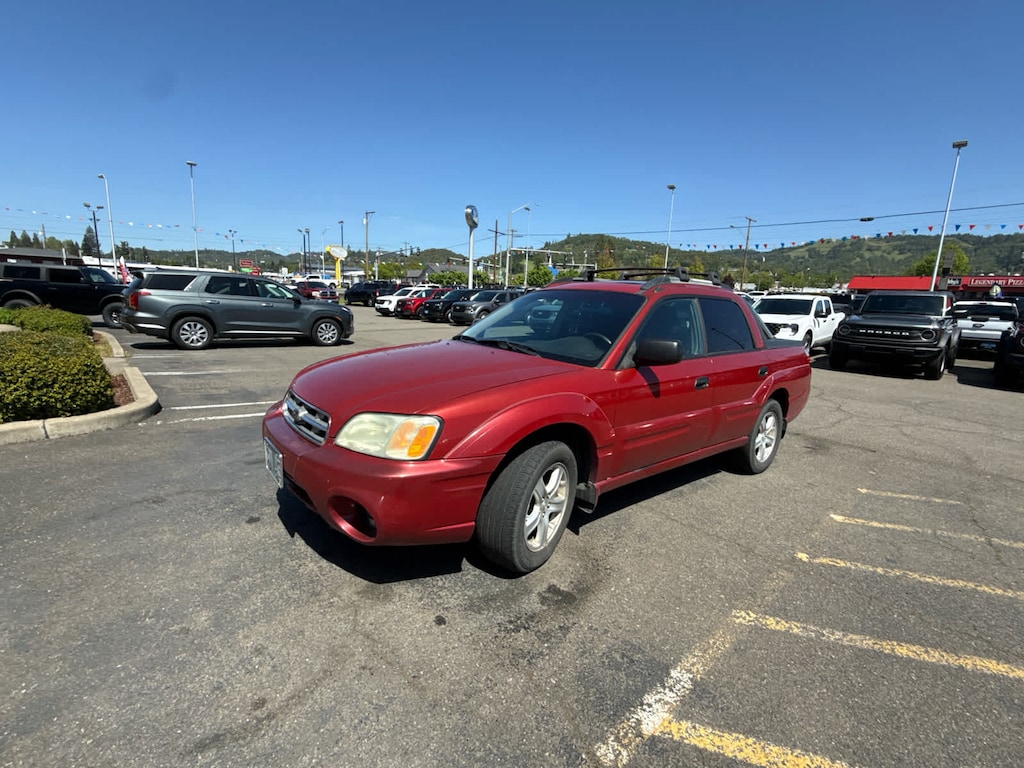 Sunroof, All Wheel Drive, CD Player, Aluminum Wheels. Privacy Glass, Keyless Entry, Child Safety Locks, Bucket Seats, Bed Liner. 2005 Subaru Baja with Garnet Red Pearl exterior and Gray interior features a 4 Cylinder Engine with 165 HP at 5600 RPM*.