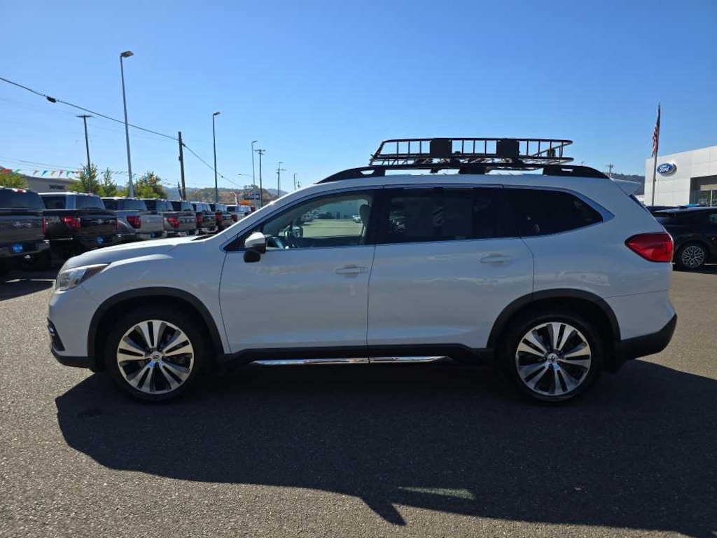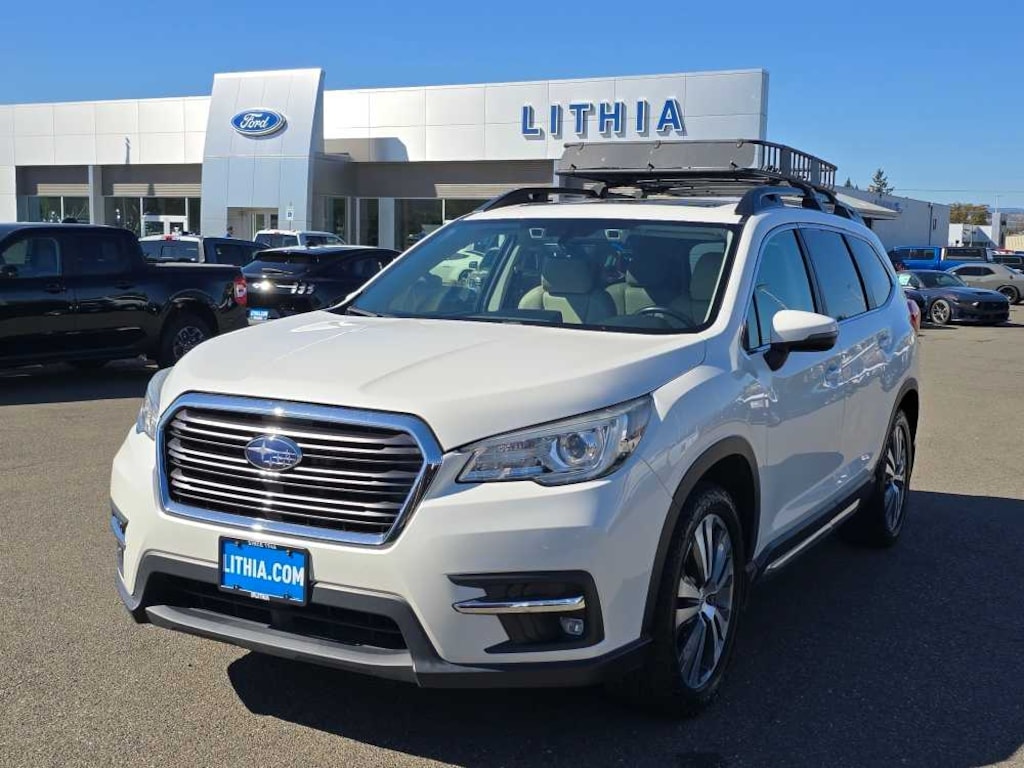 harman/kardon & MOONROOF & NAV & CARGO AREA COVER Cargo Area Cover, Dual Glass Panoramic Power Moonroof, power sunshade, Radio: Subaru STARLINK 8.0 Multimedia Nav System, AM/FM stereo HD Radio w/single disc CD player, MP3/WMA/CRR/RW file capability, multi touch gesture high resolution LCD display screen, voice activated controls for radio and navigation, Bluetooth® audio streaming connectivity, Bluetooth® hands-free phone connectivity, Bluetooth® hands-free SMS text messaging connectivity (applicable w/compatible cell phone), Near Field Communication (NFC), iPod control capability, SiriusXM All Access radio (subscription required), SiriusXM Traffic (subscription required), SiriusXM Travel Link (subscription required), smartphone integration for Aha, Android Auto®, CarPlay and Pandora, AERO CROSSBAR SET Part number SOA843X010. 2019 Subaru Ascent with Crystal White Pearl exterior and Warm Ivory interior features a 4 Cylinder Engine with 260 HP at 5600 RPM*. Non-Smoker vehicle